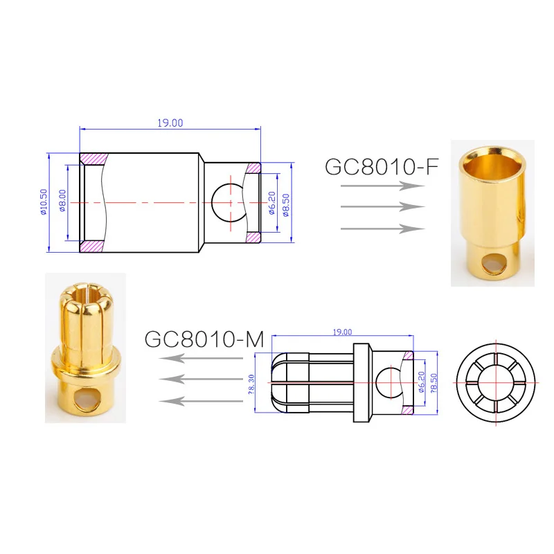 AMASS 8,0 мм вилка банана 180A / 150A 7u Толстая позолоченная высокая-токовая вилка электродвигателя gold call