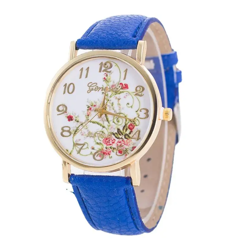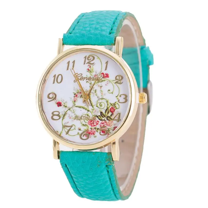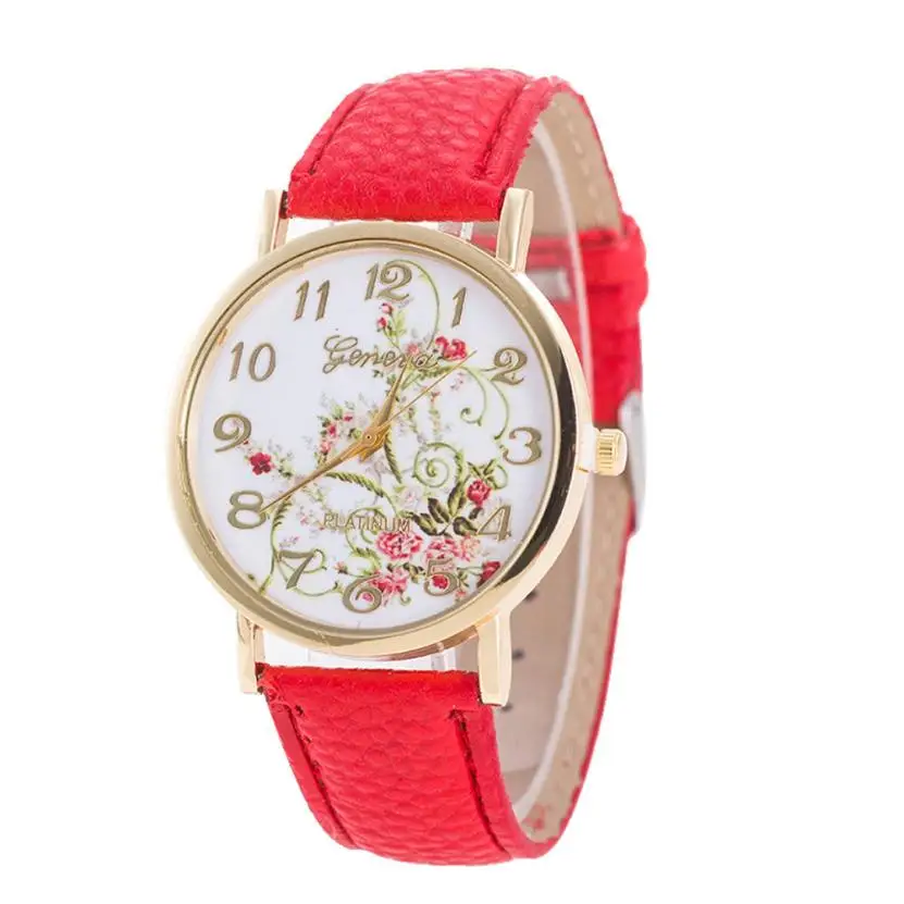 Новые модные часы, женские спортивные кварцевые часы с цветочным рисунком, женские часы, наручные часы из искусственной кожи