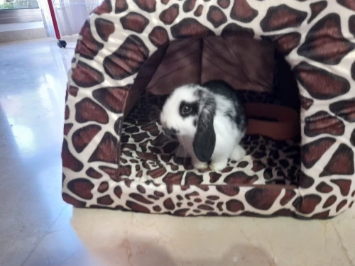 Я получил заказ. Быстрая доставка. Прибыл в Великобританию в течение 9 дней. Заказал размер 36 × 36 см для моего кролика. Это точно соответствует описанию. Я очень доволен покупкой. Мой кролик в восторге. Очень удобно внутри и приятный материал.