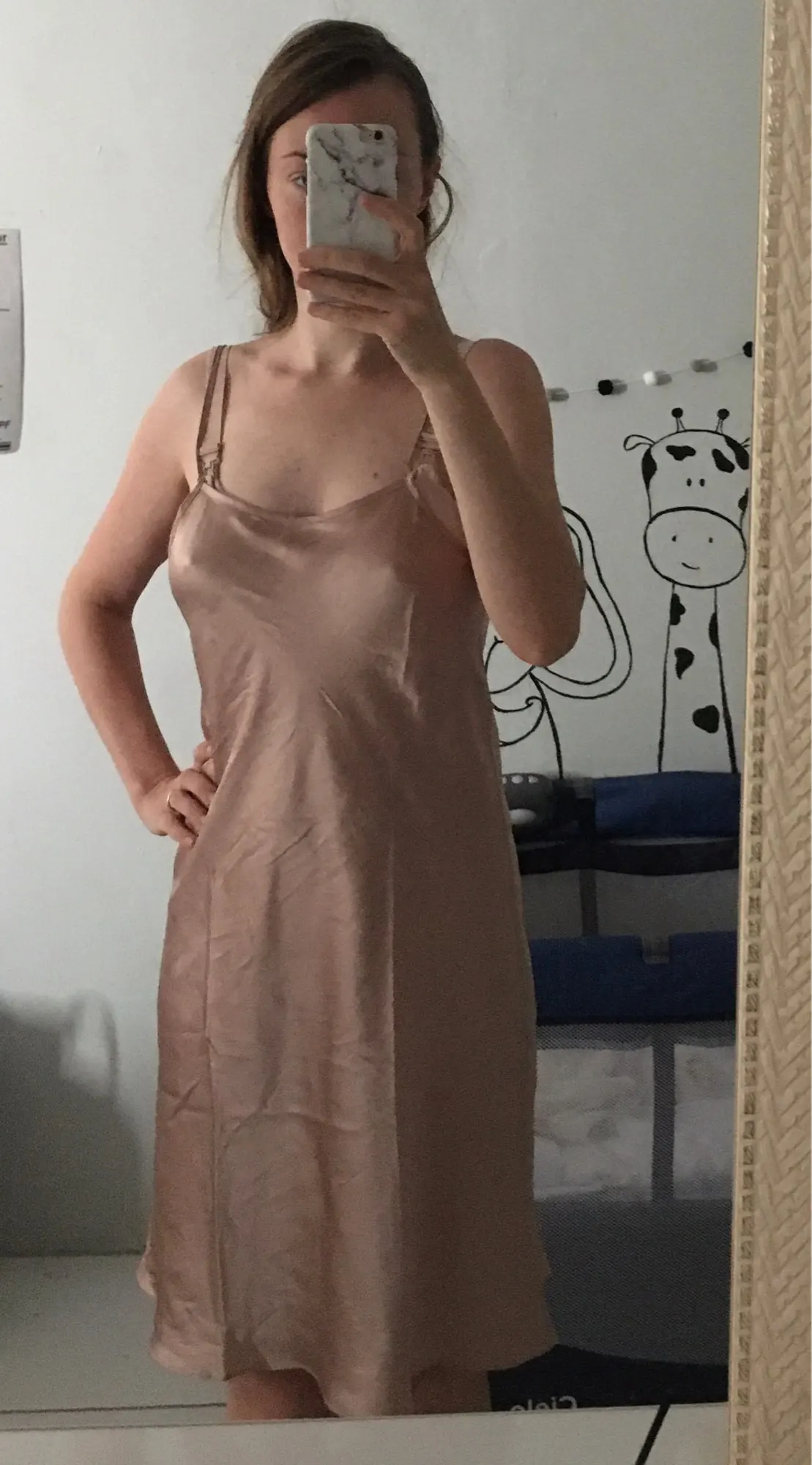 увидев кучу положительных отзывов решила заказать. пришло быстро- до Германии меньше месяца. цвет роскошный,шелк натуральный,НО.. не ожидайте от этого шёлка супер качества. учитывайте то,что сама фактура ткани немного косит,поэтому сделав шаг вперёд у меня тянет на противоположной стороне под грудью. так же было несколько косяков ,умело сглаженных утюгом. в итоге открыла спор, продавец вернул часть суммы.за это ему отдельное спасибо, потому что комбинацию носить не буду