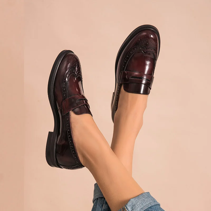 Лоферы женские из натуральной коровьей кожи, с круглым носком, с перфорацией, ручная работа, 27039