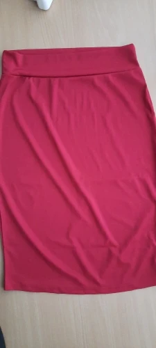 Приятная юбочка. Тонкий трикотаж, цвет яркий, насыщенный. В талии свободно на обхват 68см. Немного слишком обтягивает бедра, не узко, просто видно все складки. Лучше бы материал был поплотнее, но на лето, думаю, будет хорошо. Как раз успею немного привести себя в порядок.