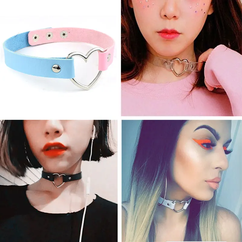 Ожерелье Zoeber ручной работы из кожи в стиле панк, чокеры, ожерелья для женщин, пряжка в форме сердца, пояс, очарование, каваи, Лолита, металлическое ожерелье, воротник