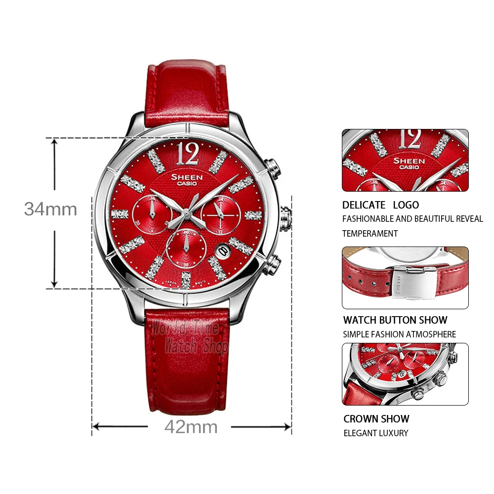 Часы Casio SHEEN женские часы Swarovski Crystal топ класса люкс комплект 30м водонепроницаемые кварцевые женские часы женские хронограф стразы подарки часы спортивные часы relogio feminino reloj mujer montre homme