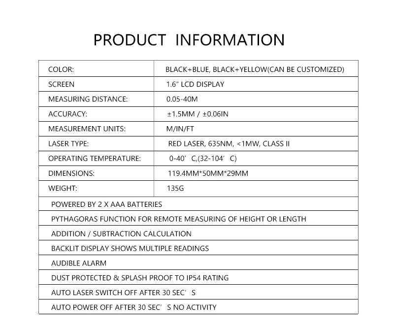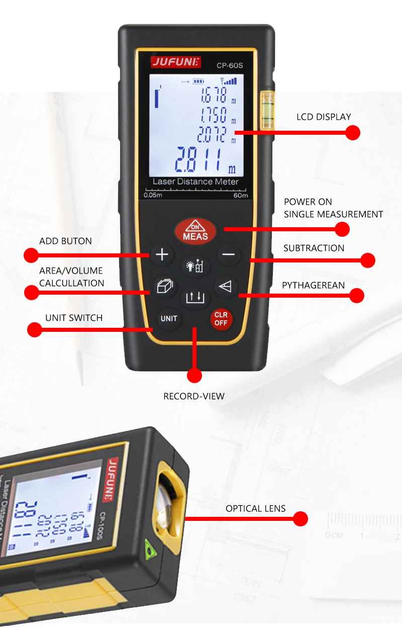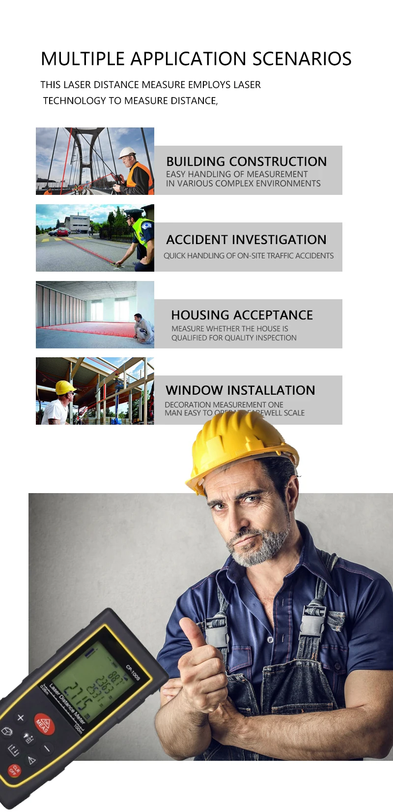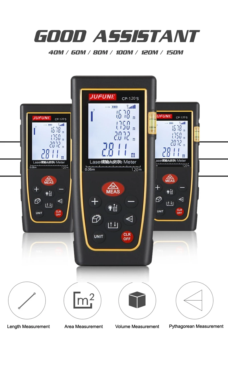 Заказывал 100 метровый, отправили 120 метровый. Спасибо! :) . Беру второй такой уже. Качество отличное, измеряет точно и быстро, кнопки хорошие, есть подсветка и крепление на штатив. Гораздо лучше, удобнее и дешевле чем Condrol.
