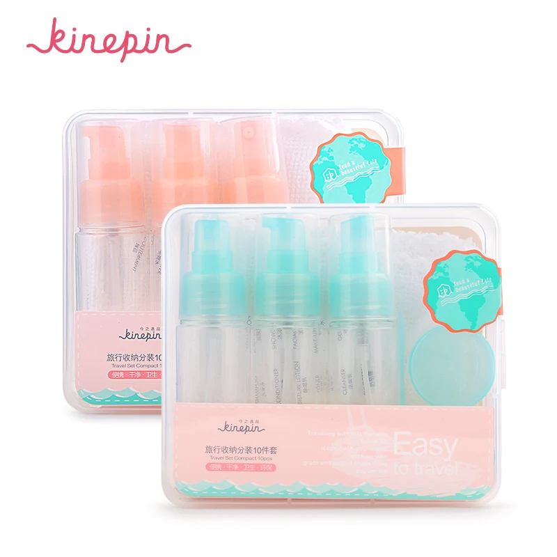 10 шт.компл. портативная дорожная косметика, многоразовые бутылки, пустая бутылка с распылителем, пластиковый контейнер от KINEPIN