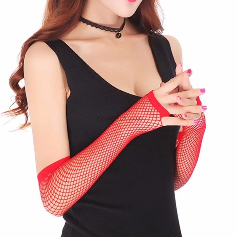Стильные длинные черные перчатки в сеточку, женские перчатки без пальцев, танцевальные, в готическом стиле, панк-рок, модные перчатки