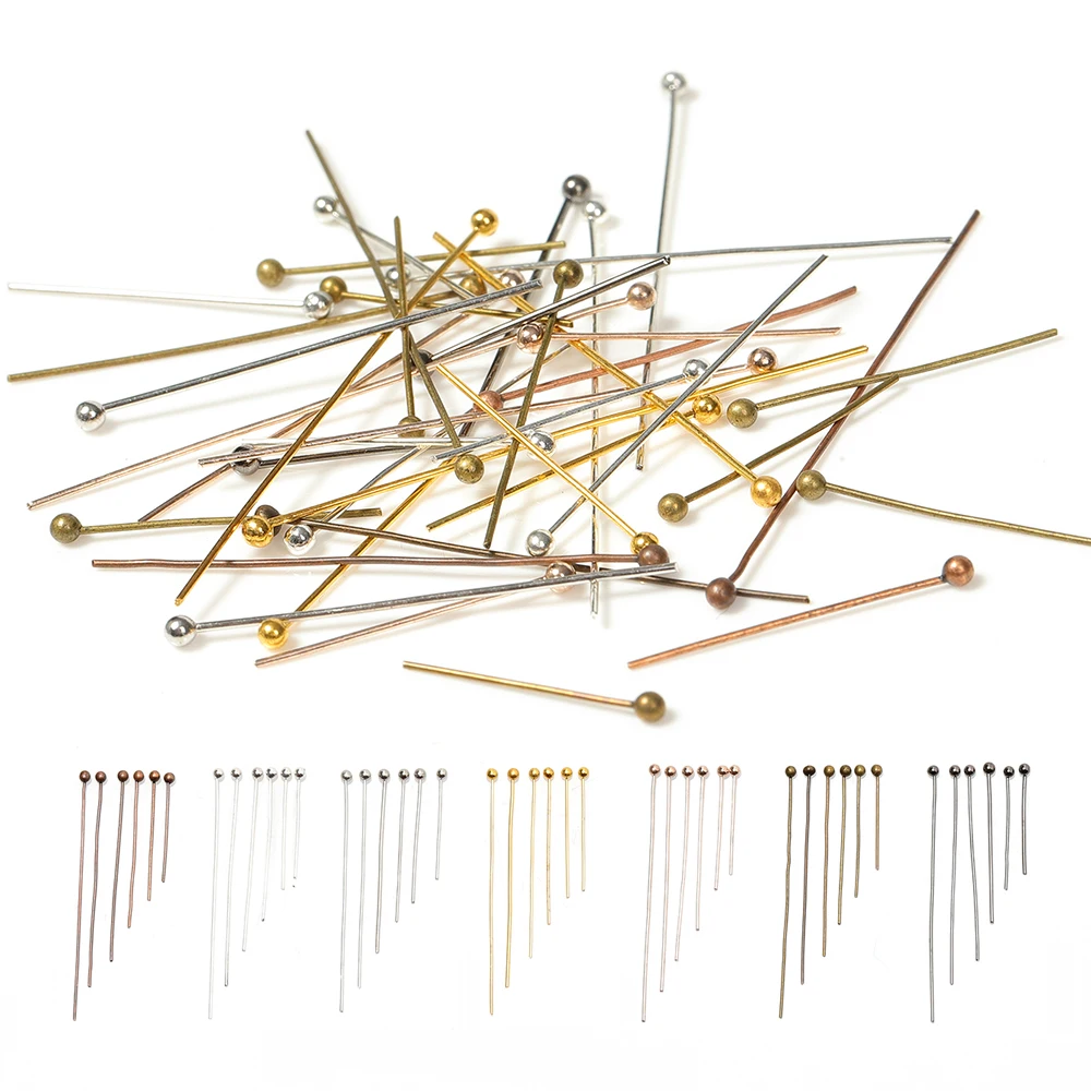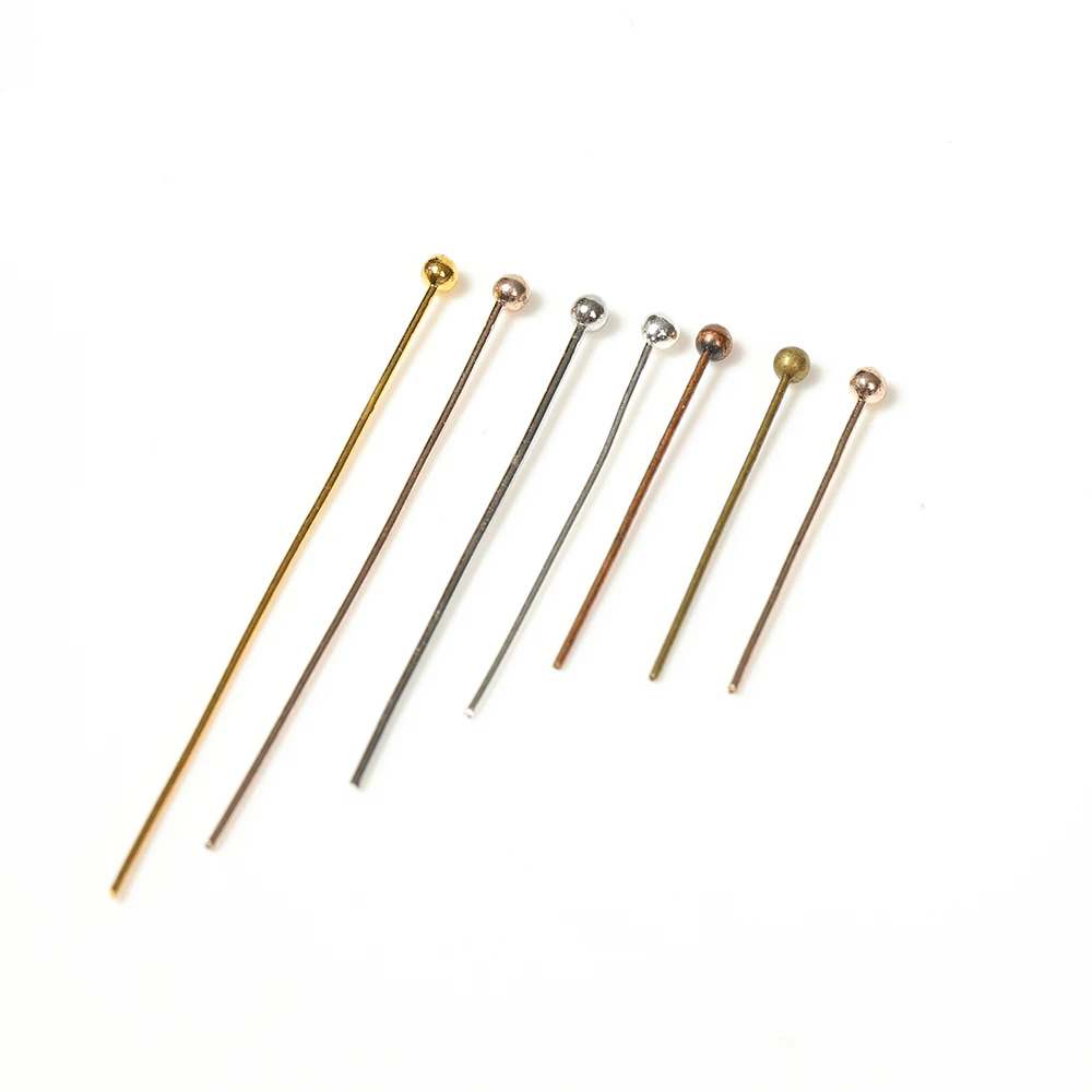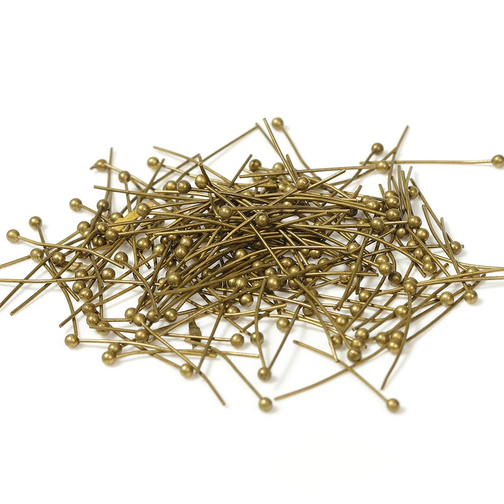 200 шт., античная бронза/родий/позолота, металлические шариковые головки, булавки для самостоятельного изготовления ювелирных изделий, длина 20/25/30/40/50 мм (24 калибра)