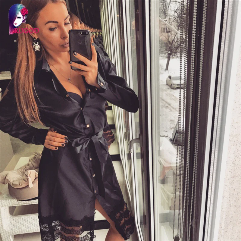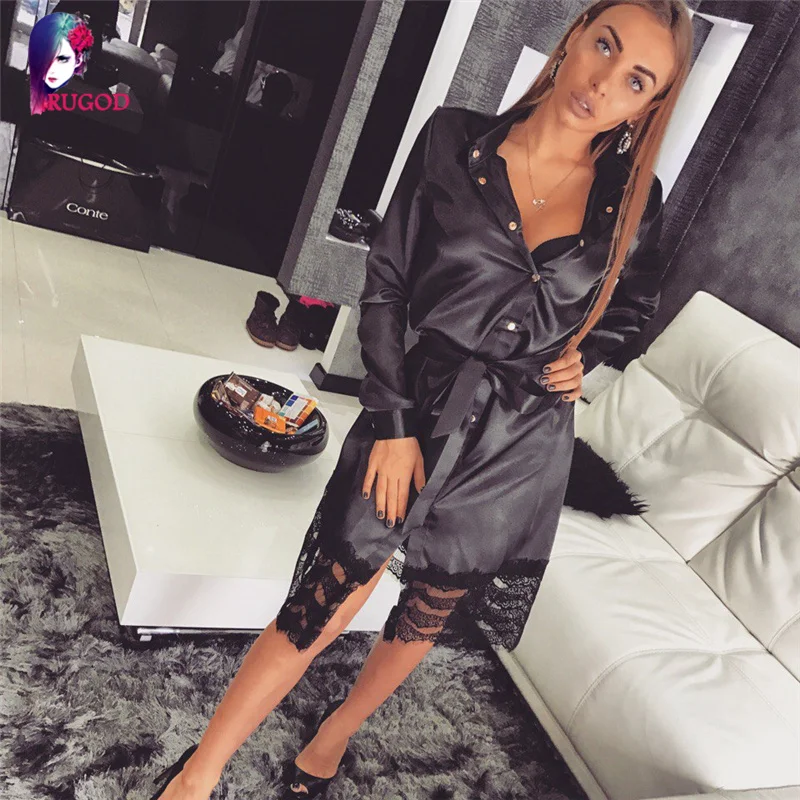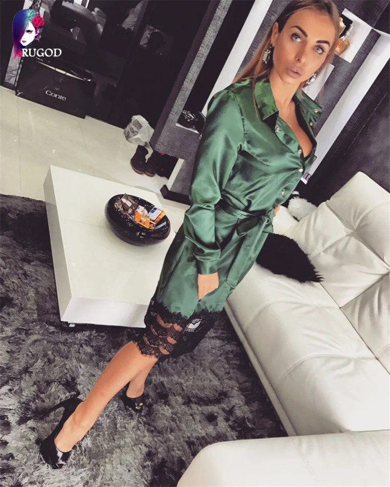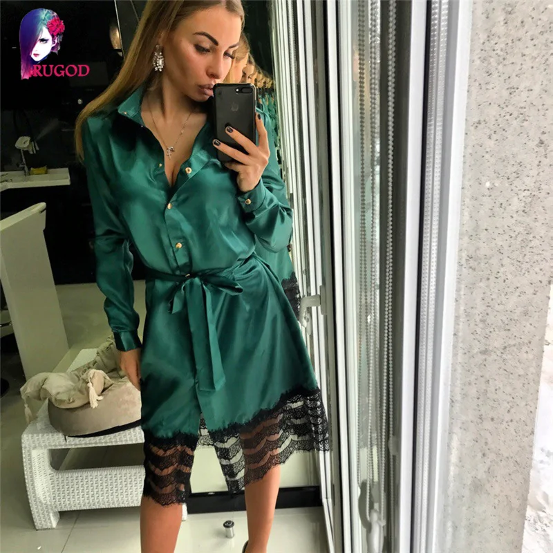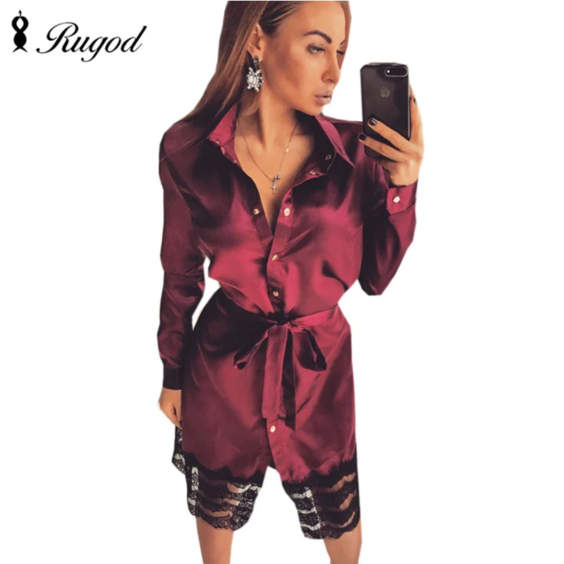 Rugod 2021 новая весенне-летняя длинная рубашка, Женская кружевная шелковая блузка в стиле пэчворк, женские блузы, повседневные блузы с длинным рукавом