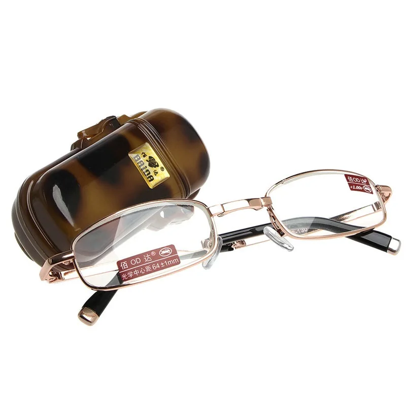 Очки для чтения, металлические, складные, с полной оправой, с чехло...