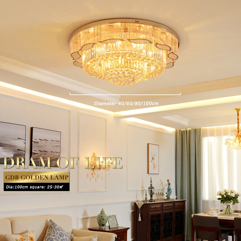 Золотая Хрустальная потолочная лампа, светодиодный светильник Deckenleuchte для гостиной, современные потолочные светильники