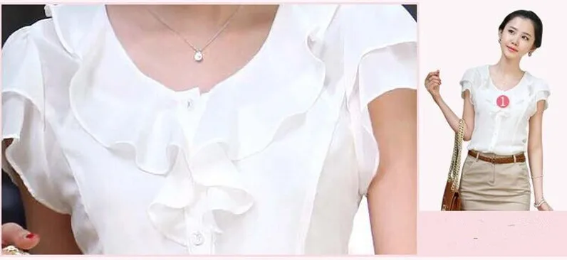 Летние блузки с оборками, белая шифоновая блузка с коротким рукавом, повседневные однотонные Топы большого размера