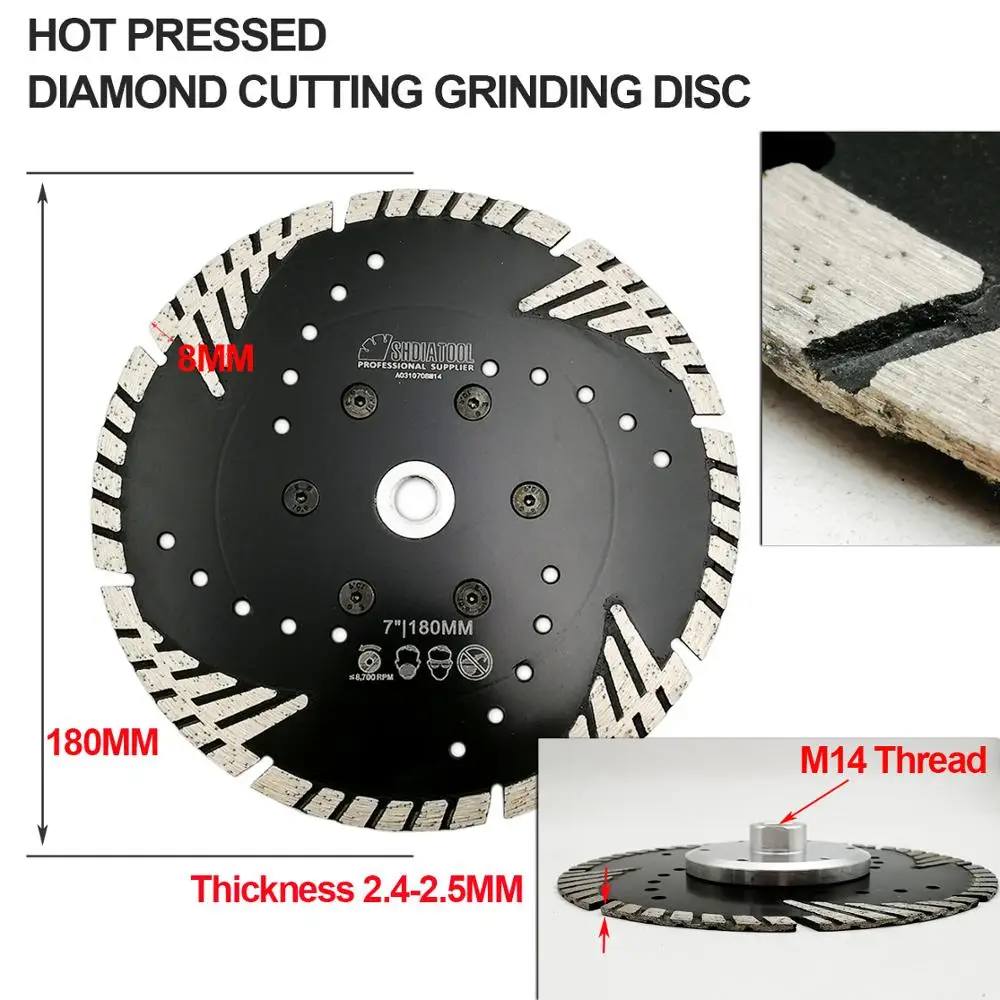 SHDIATOOL M14 фланец 7 "180 мм Алмазное турбо-лезвие режущие диски с наклонной турбо защитой зубов гранит мраморный пилы