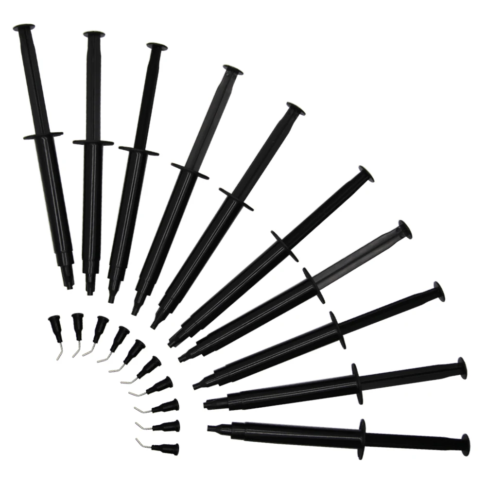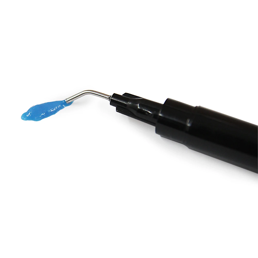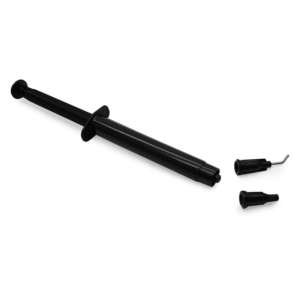 2. Откройте крышку шприца, удерживайте его и Сожмите. Перемещайте и наносите с левого первого примолярных зубов на