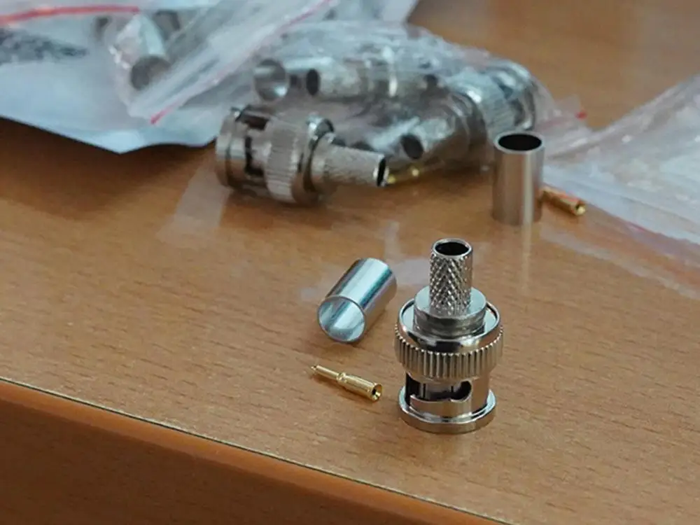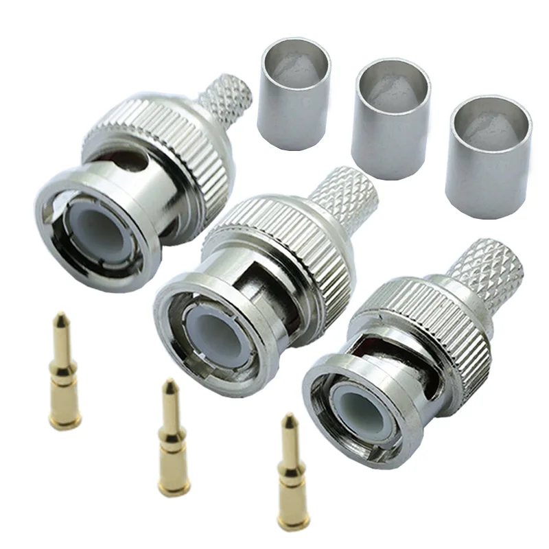 10 шт.лот BNC Штекерный обжимной разъем типа папа для систем видеонаблюдения, гнездовой соединитель BNC RG58RG59RG6, оптовая продажа