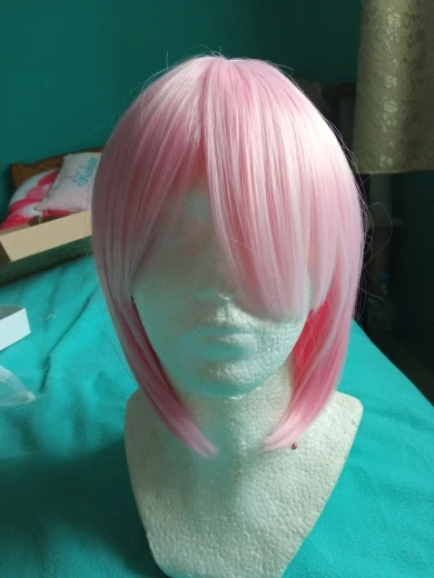ОЧЕНЬ БЛЕСТИТ (можно убрать сухим шампунем) и цвет слишком ядреный подходит не под все цвета кожи но в целом хорошо на персонажей нужно будет обязательно подрезать