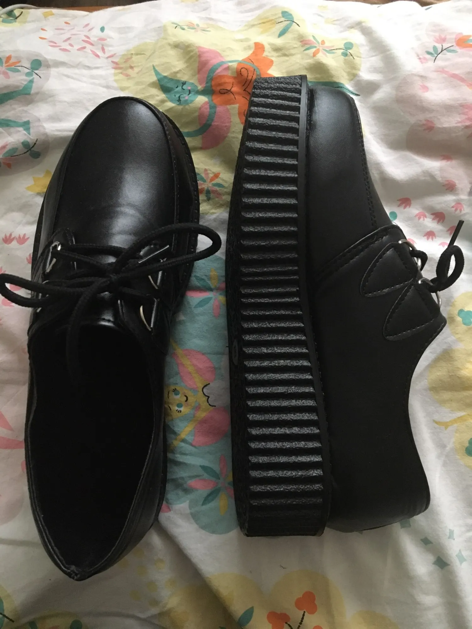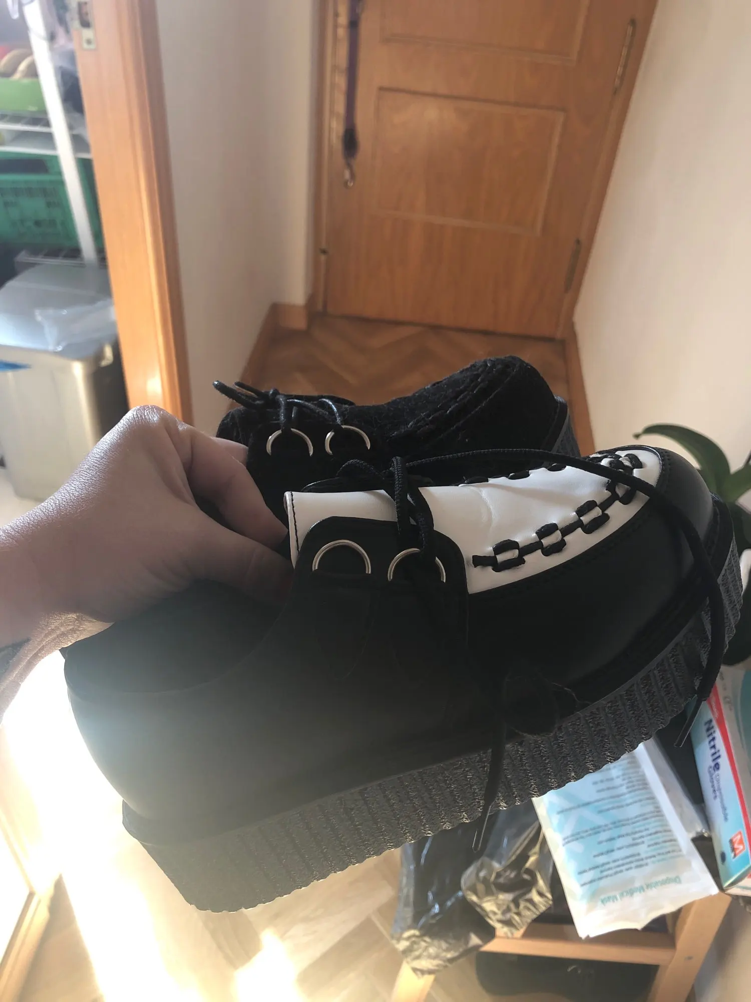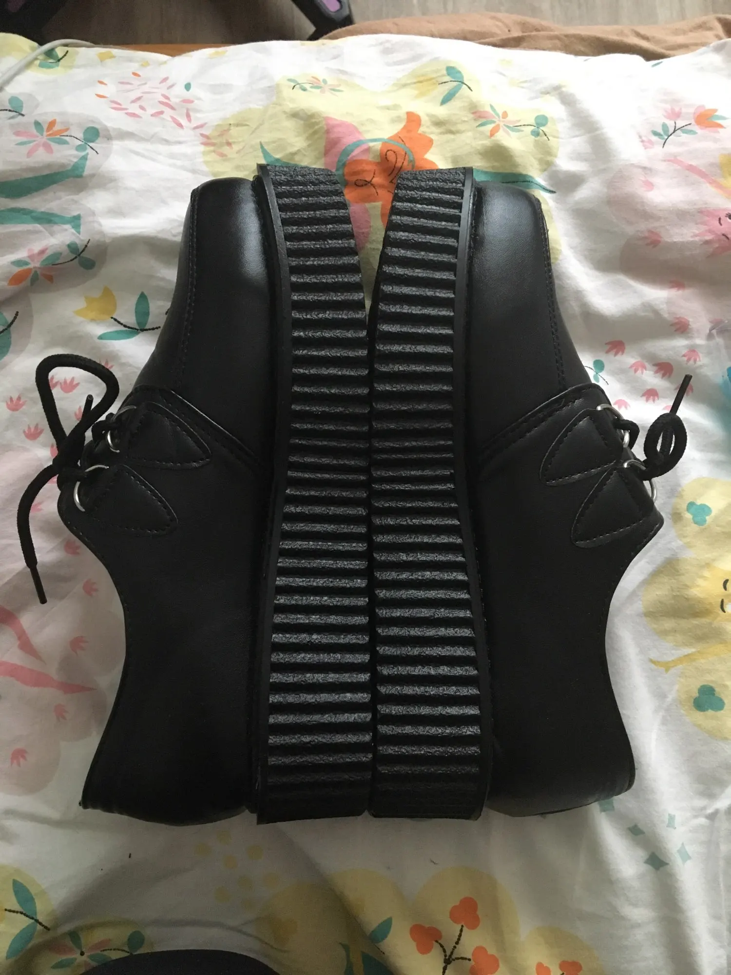 Я люблю их sm! Они прибыли через месяц или меньше... моя мечта эмо с 2015 года наконец стала реальностью lol. Закажите на размер больше, если вы хотите носить их с теплыми носками, чтобы не повредить. В противном случае идеально подходит для такой низкой цены.