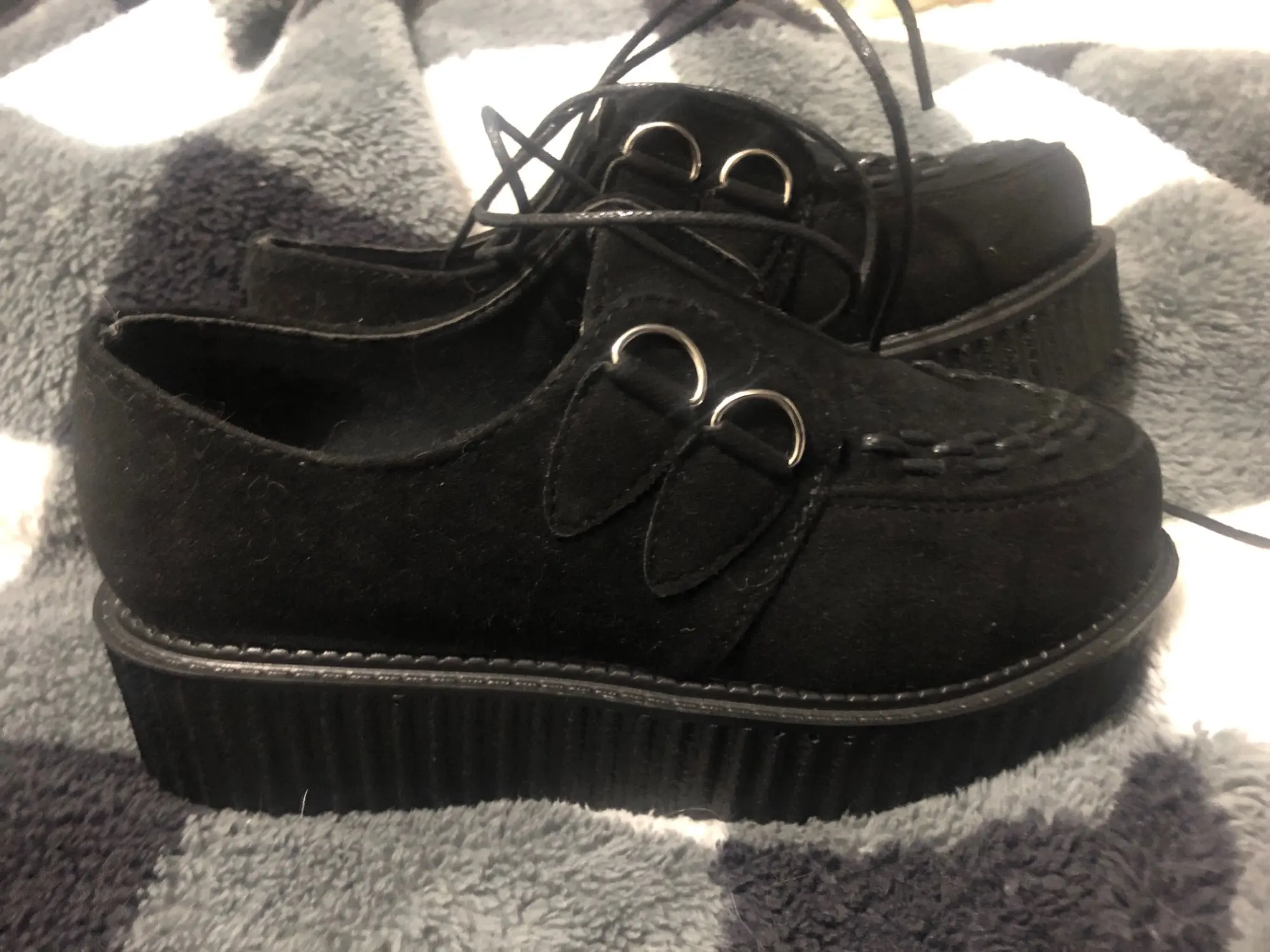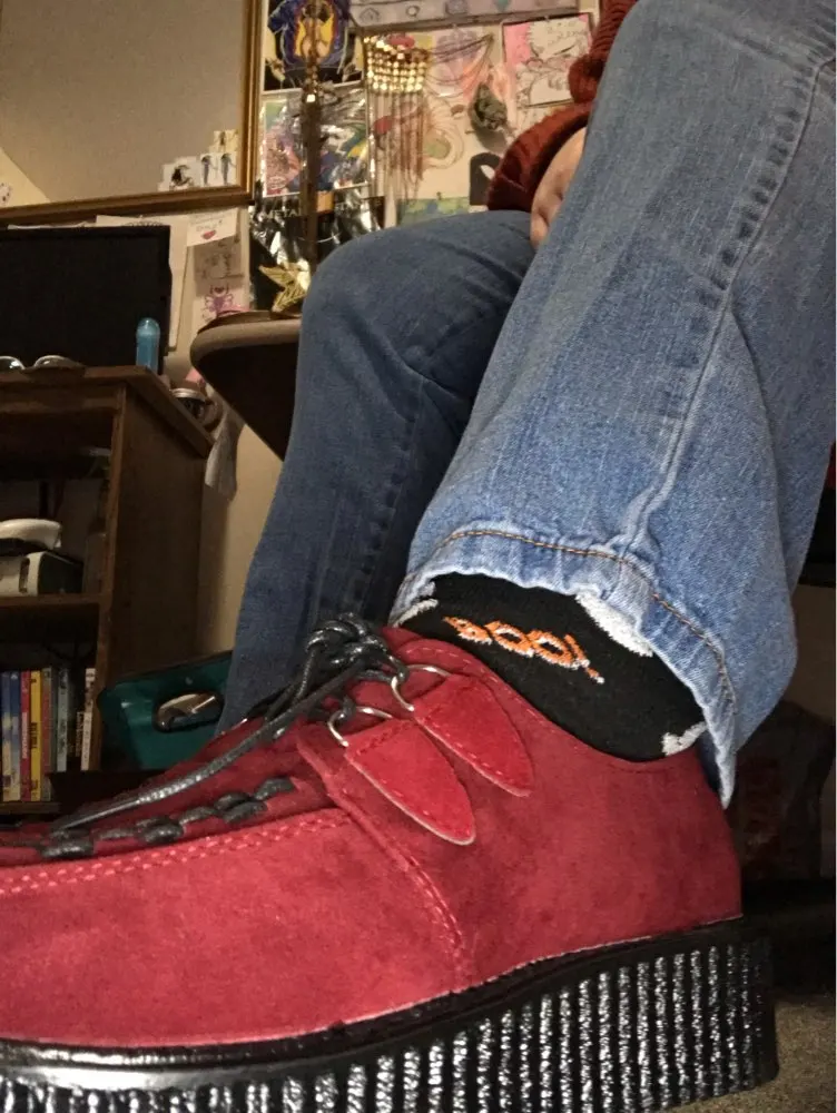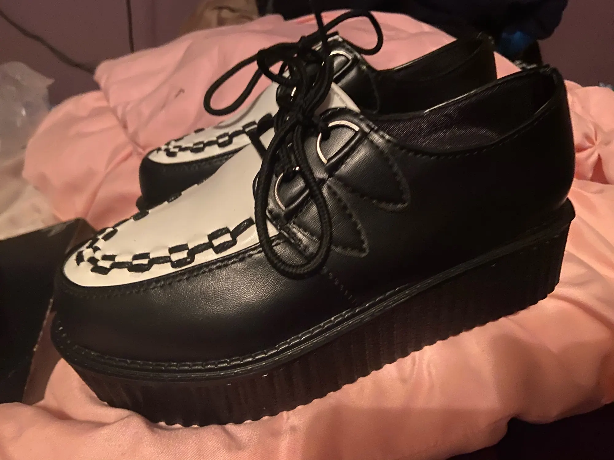 Я люблю их sm! Они прибыли через месяц или меньше... моя мечта эмо с 2015 года наконец стала реальностью lol. Закажите на размер больше, если вы хотите носить их с теплыми носками, чтобы не повредить. В противном случае идеально подходит для такой низкой цены.
