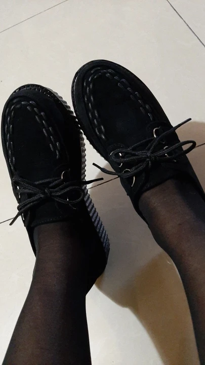 Супер классно! Идеально сочетается с юбками и другими нарядами, они чувствуют себя немного недорогими, но все еще удобны в ходьбе. Может быть, размер ниже, bc я получил размер 38, но он немного великоват, и мне нужно затянуть их плотнее ^ _ ^