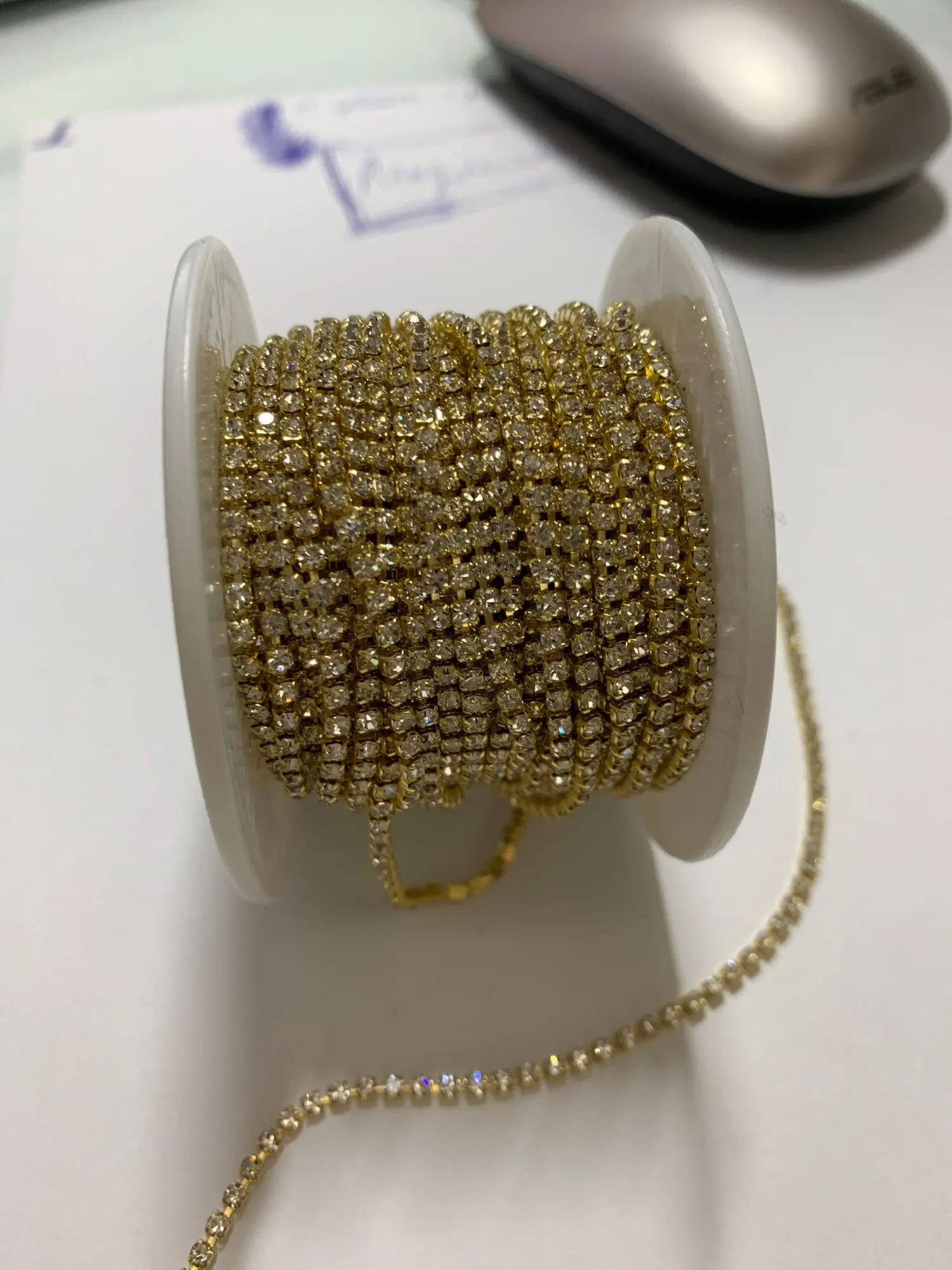 Очень качественная стразовая цепочка! Доставка быстрая, заказом очень довольна