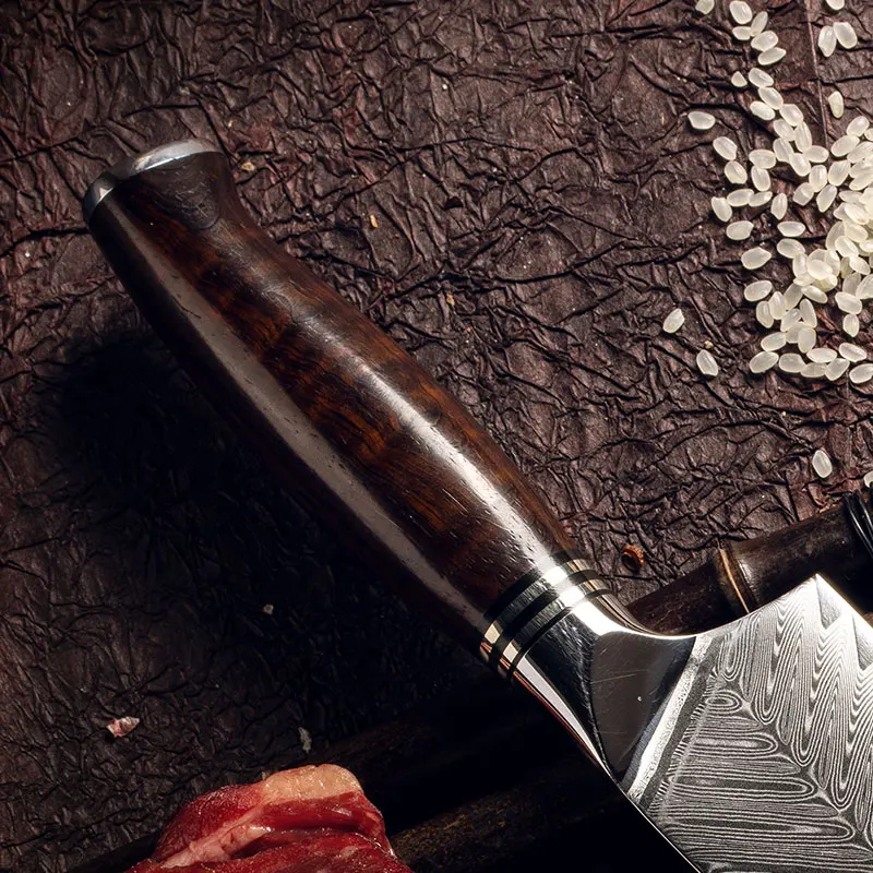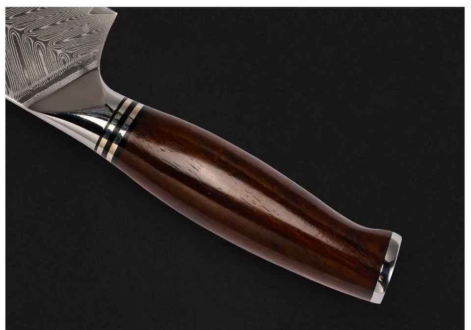 Лезвие ножа изготовлено из 73 слоев дамасской стали с твердостью ядра 58-62 для исключительной резкости, удержания кромок и долговечности.