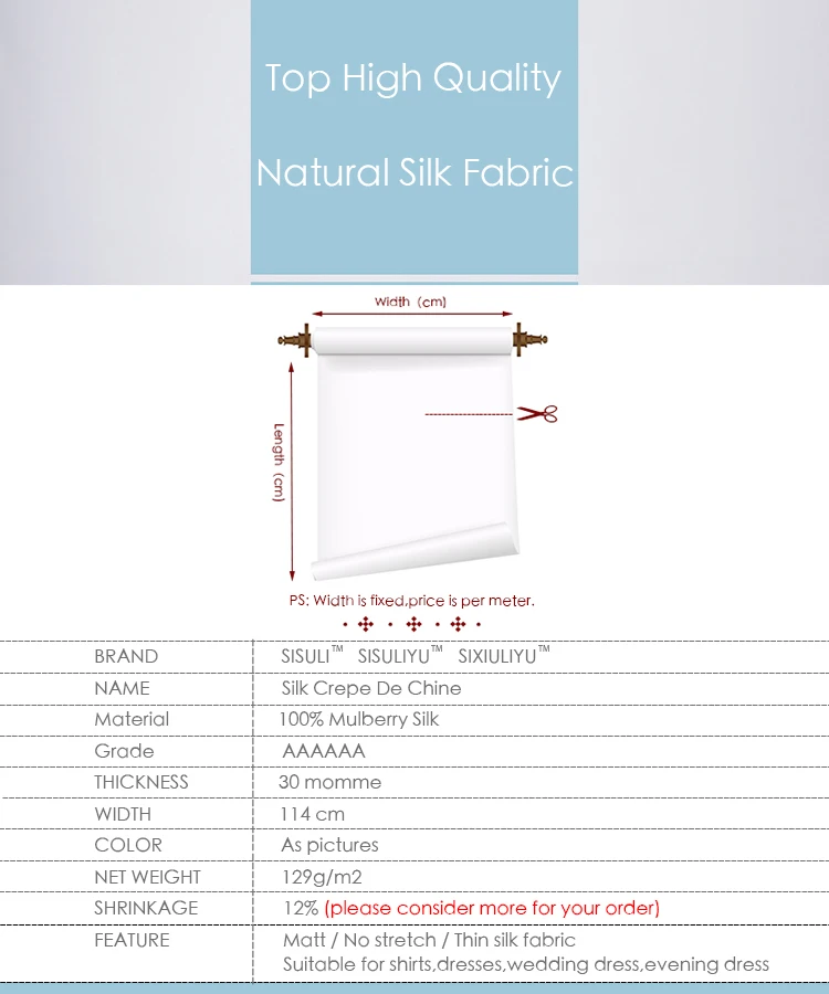 100% шелк крепдешин 114 см ширина 14momme чистый шелк тутового шелк...