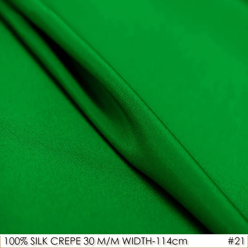 Плотная крепдешиновая шелковая ткань для платья, ширина 114 см, 30 мам, 100% чистый шелк, ткань 2017 для вышивки, цвет зеленый tie-NO.21Bamboo