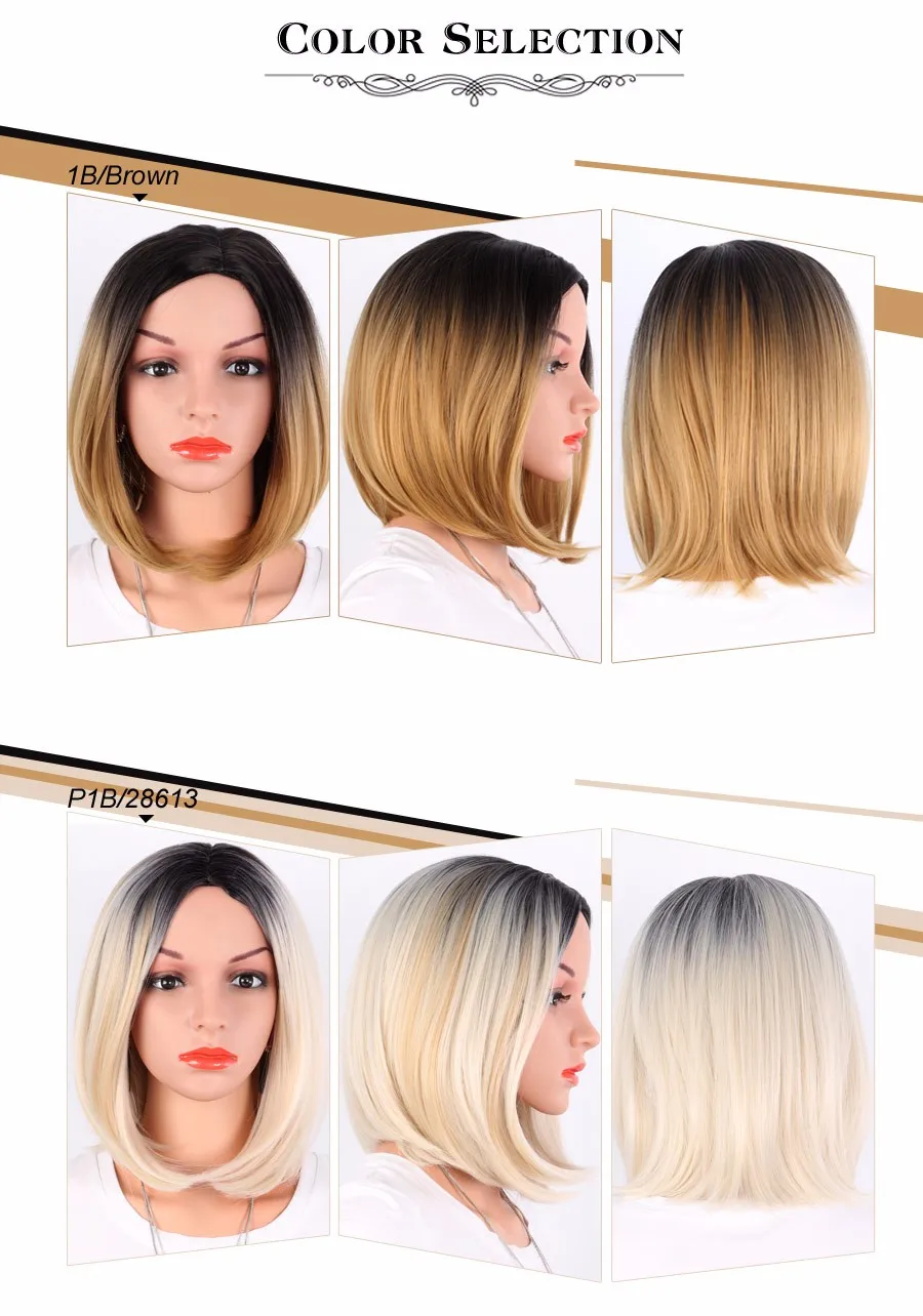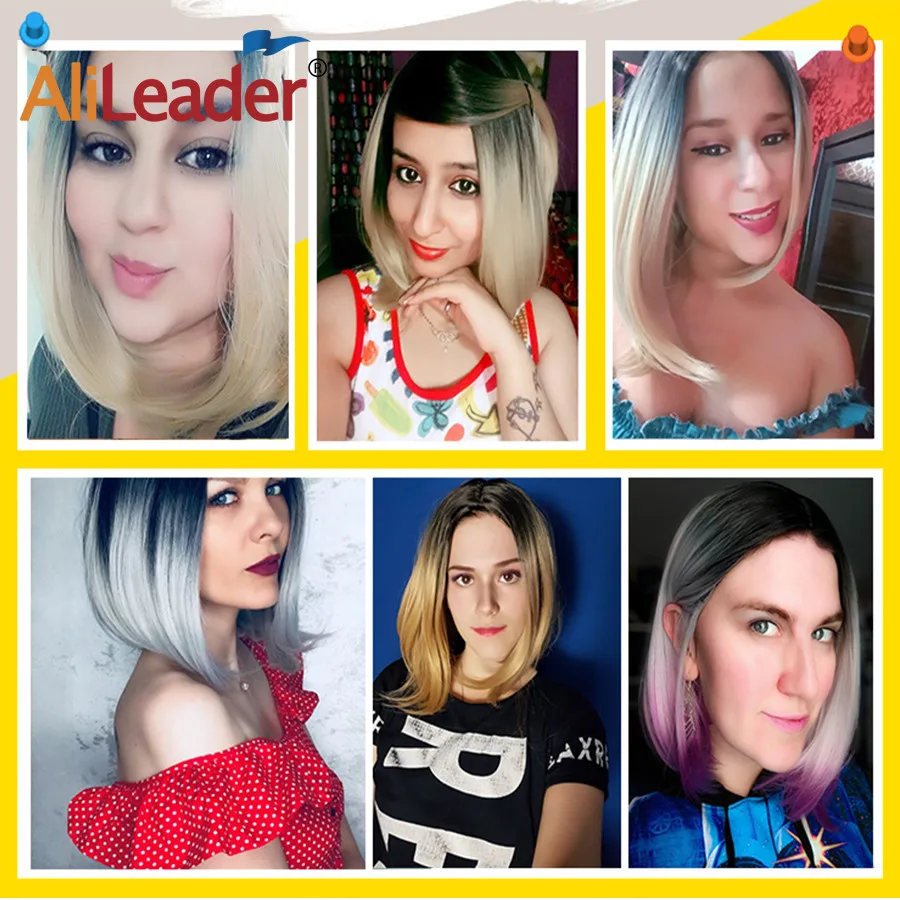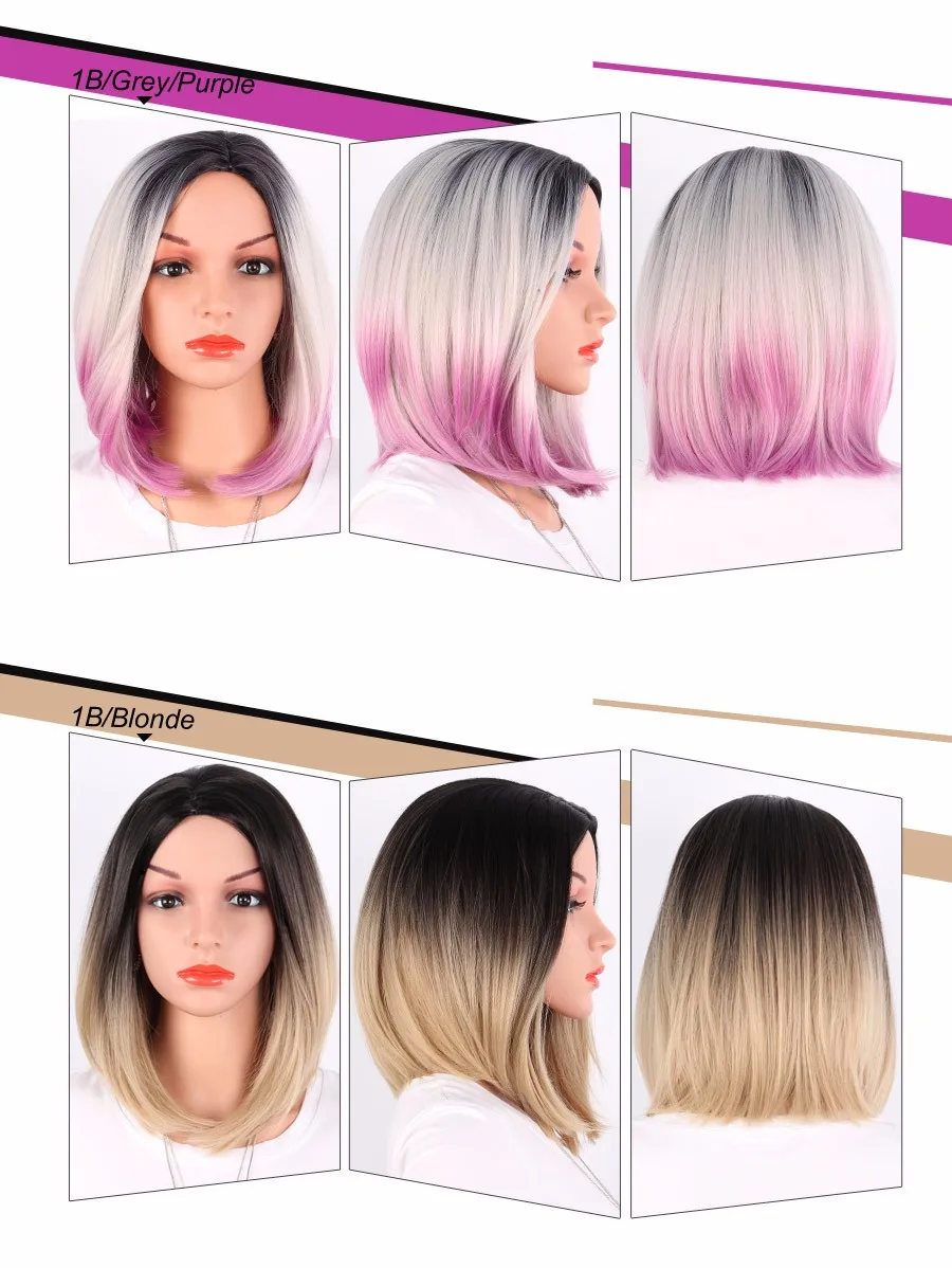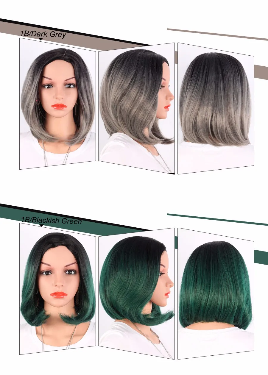 AliLeader синтетический термостойкий короткий парик шелковистые прямые волосы Боб Стиль Омбре два тона зеленый парик темно-серый афро