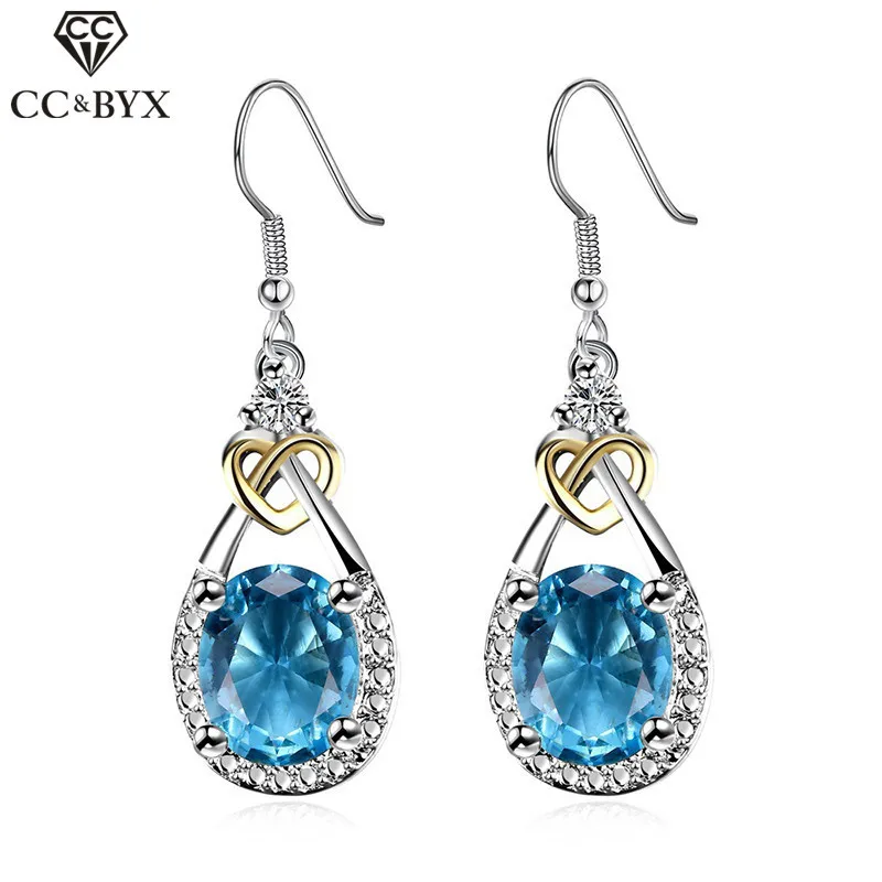 CC 925 посеребренные ювелирные изделия серьги синие CZ Висячие серьги для женщин Свадебные обручальные серьги в форме капли воды аксессуары CCE101