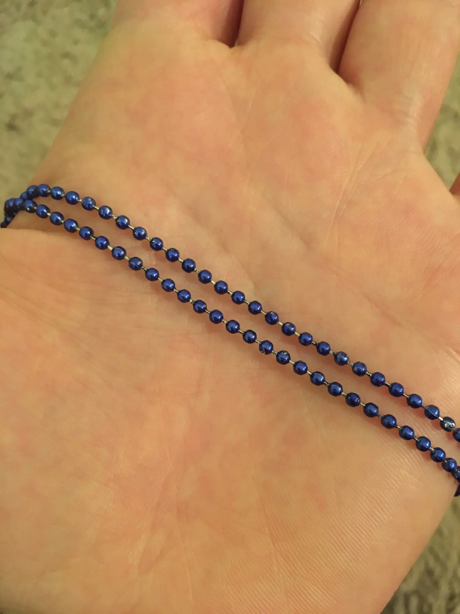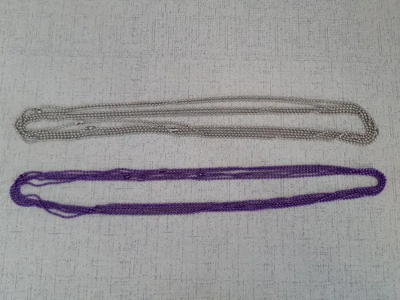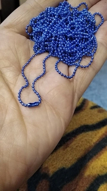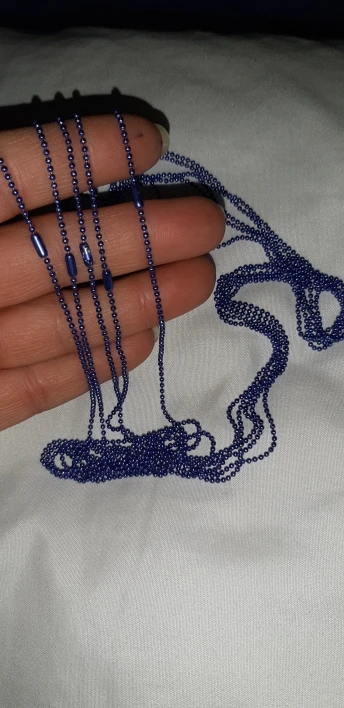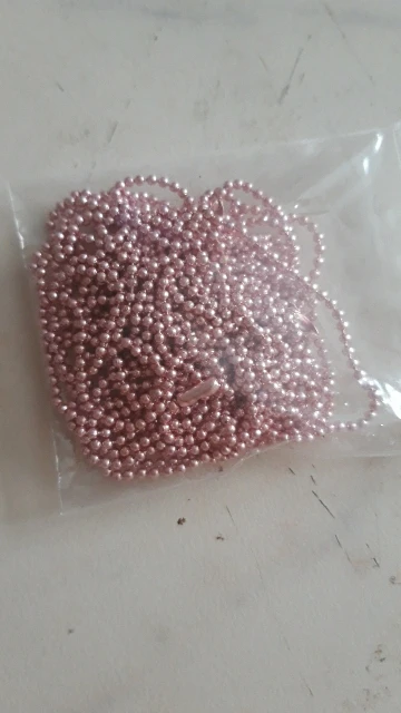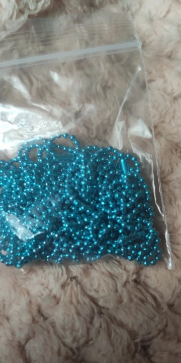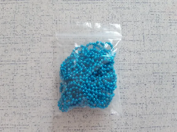 В Свердловскую область доставка почти две недели в одном пакете с другим товаром. Цвет - напыление, причём менее качественное, чем у голубого (ранее заказывала ярко-голубую цепочку). При наматывании на запястье в качестве браслета цепочка перекрутилась и обрела волнообразную форму, обратно не распрямляется. Цвет красивый, но качество могло быть и лучше. С продавцом не общалась, товар был отправлен быстро. Рекомендую заказывать более светлые цвета и более крупный размер шариков у цепочки.
