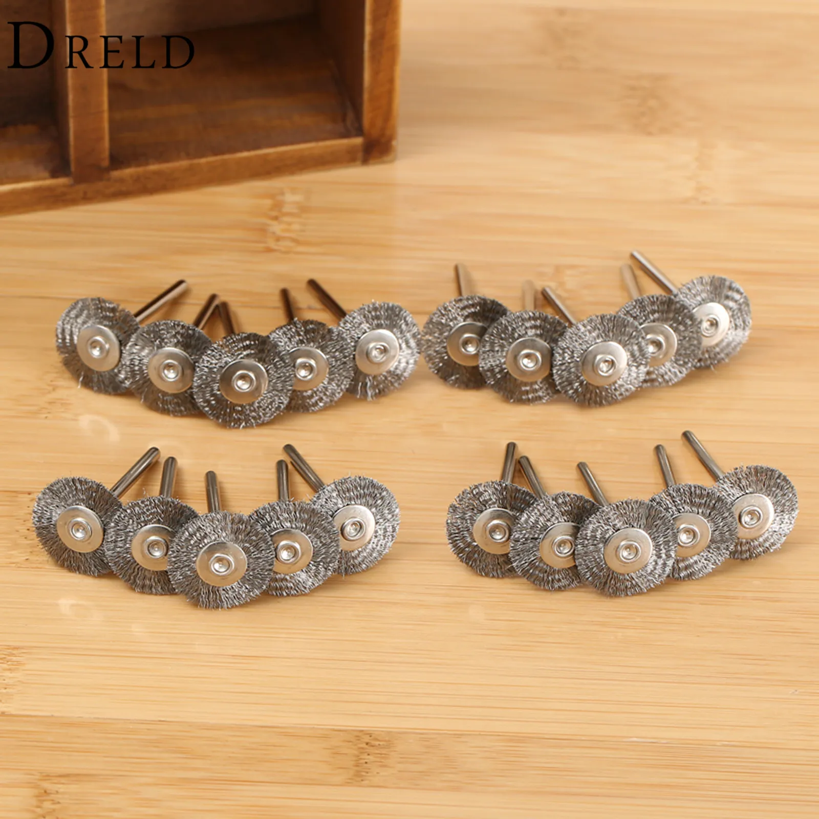 DRELD 20 шт. Аксессуары Dremel 22 мм стальная вращающаяся полировальная щетка щетки колеса провода шлифовальный вращающийся инструмент для мини-дрели полировка