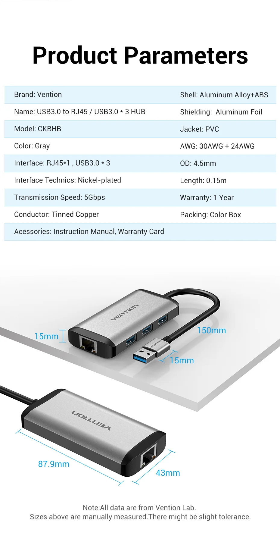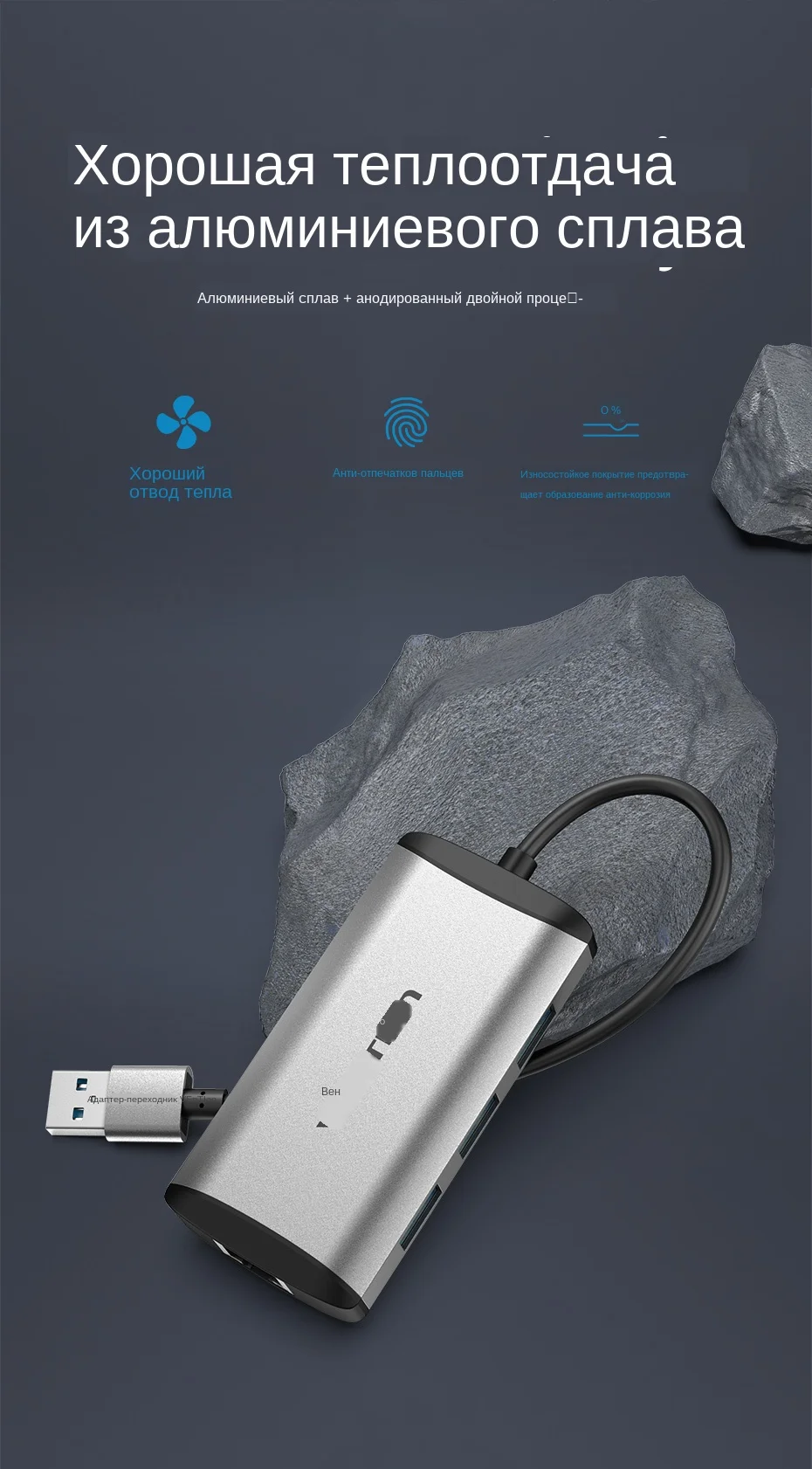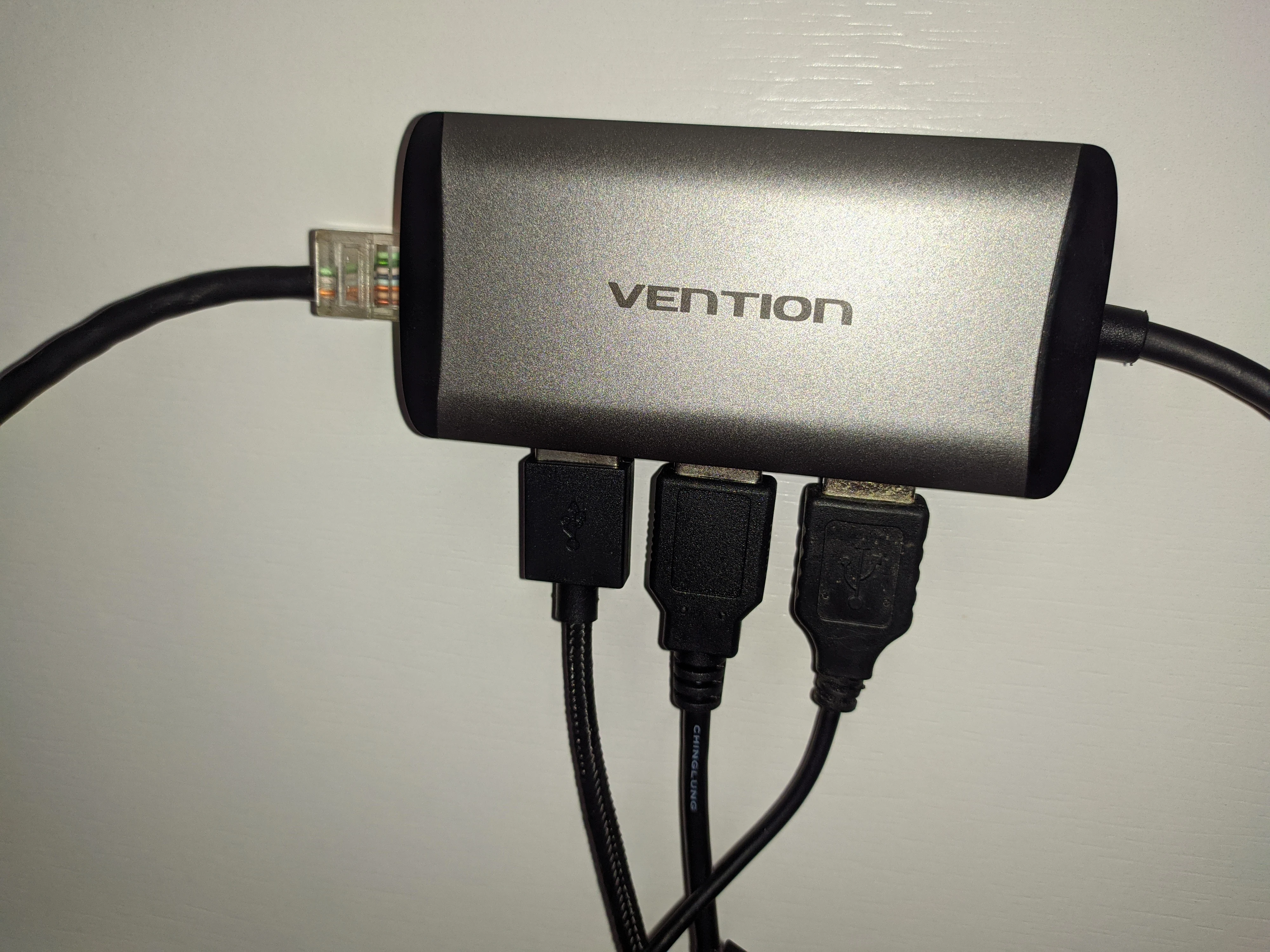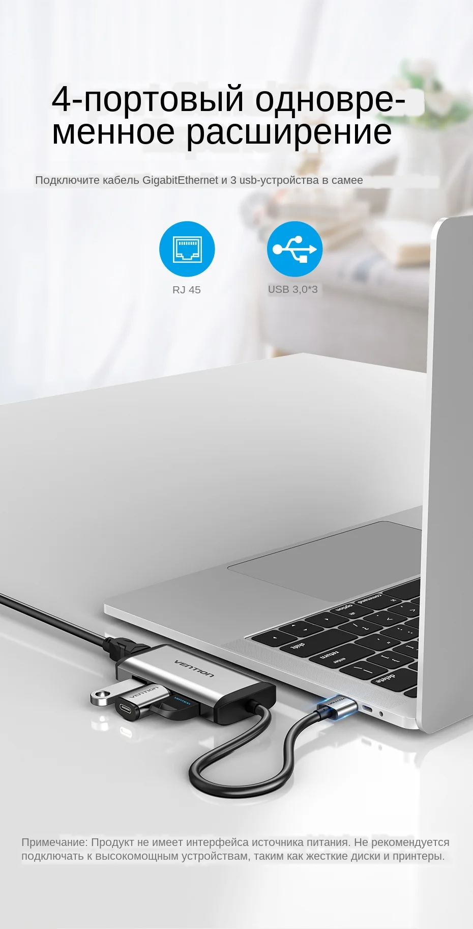 Товар соответствует описанию, доставляется в течение месяца, под пузырчатым конвертом. Я выбрал концентратор Ethernet с тремя портами USB 3,0 для подключения к гибридному ПК, у которого нет подключения Ethernet (порт RJ45). Он позволяет не портить usb-порт на своем ПК и даже зарабатывать еще два, а также может подключаться к сетевому кабелю. Концентратор, бренд Vention, сразу же распознан под Windows 10 версии 20H2, даже не проходит установку. Только маленький звуковой сигнал-позволяет узнать, что он распознан. Ethernet-порт гигабит, что позволяет вам надеюсь на тестовый поток до 125 мегабайт в секунду. Вы найдете в коробке обычную информацию-на английском и китайском-: гарантия (которая покрывает и не покрывает) и описание продукта. После 30 минут использования температура немного увеличивается, но алюминиевый корпус играет свою роль в качестве теплоотвода. Чтобы увидеть продолжительность.