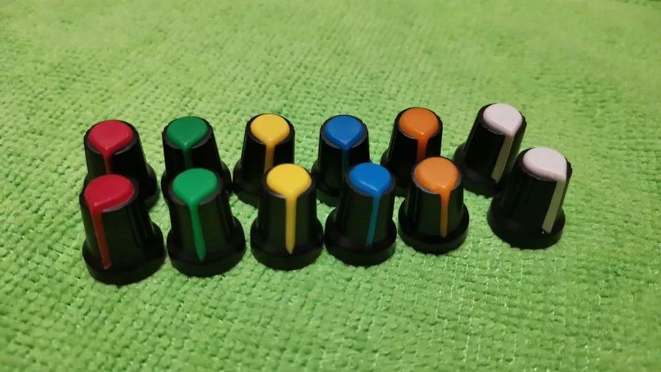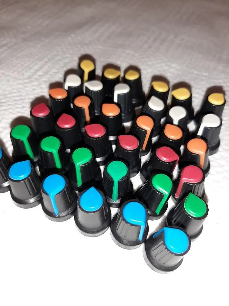 Колпачок для потенциометра (персиковая кнопка в форме сердца разные цвета), диаметр 6 мм, диаметр 15 мм * 17 мм, 12 шт.