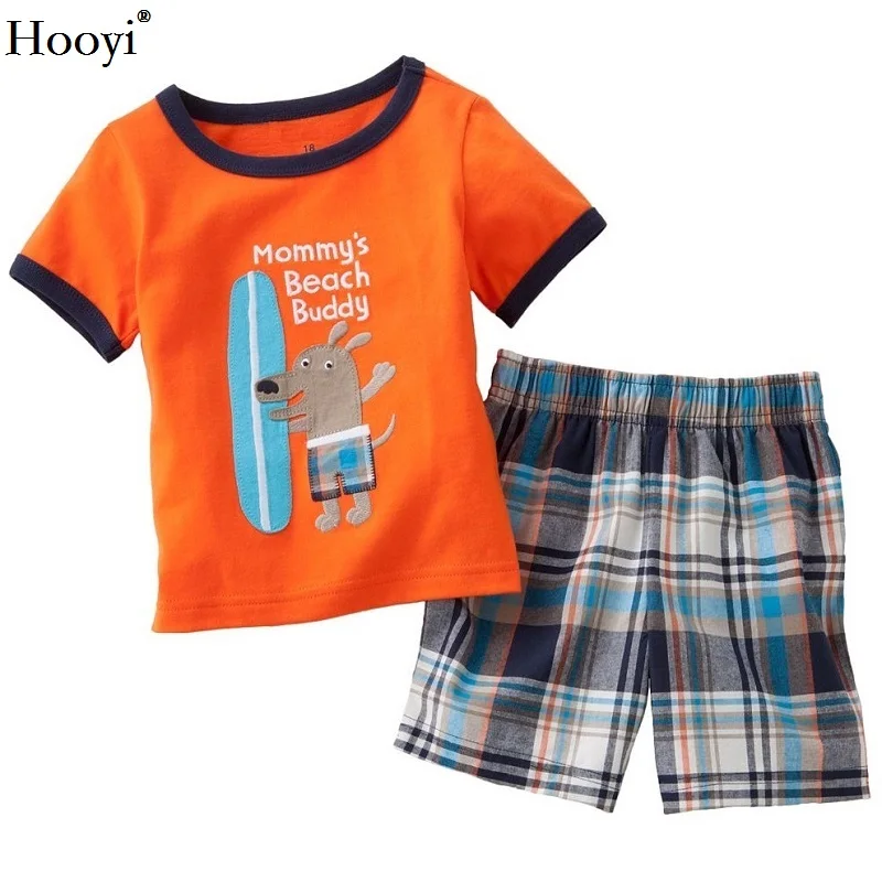 Hooyi Дайвинг обезьяна Пижама для маленьких мальчиков комплекты одежды 100% хлопок мультфильм Детская домашняя одежда От 2 до 7 лет Детские футболки шорты