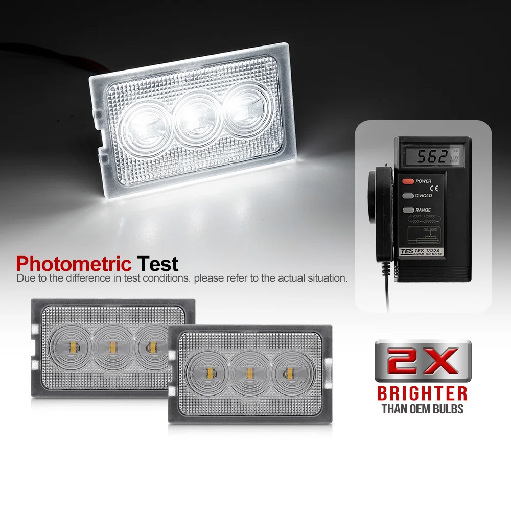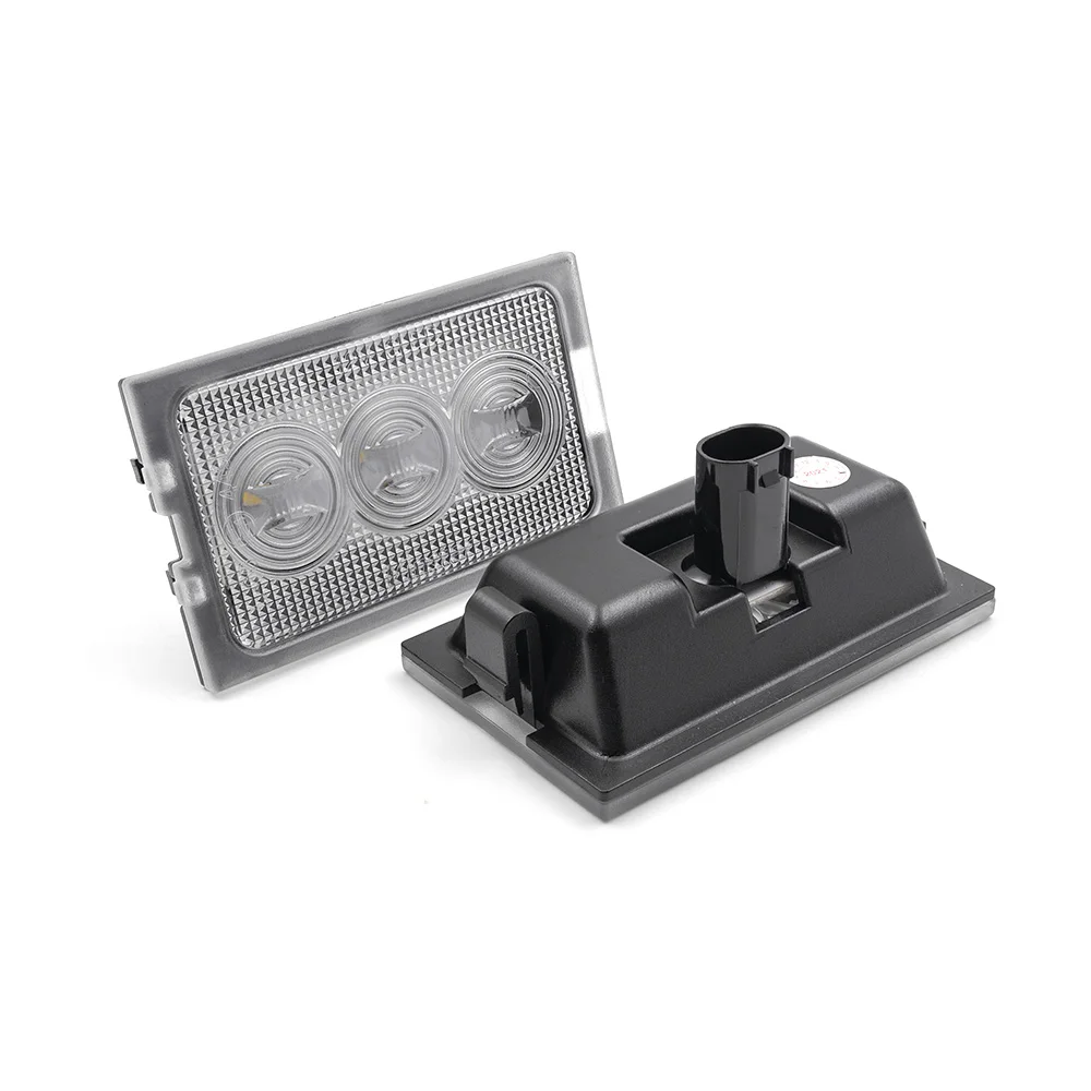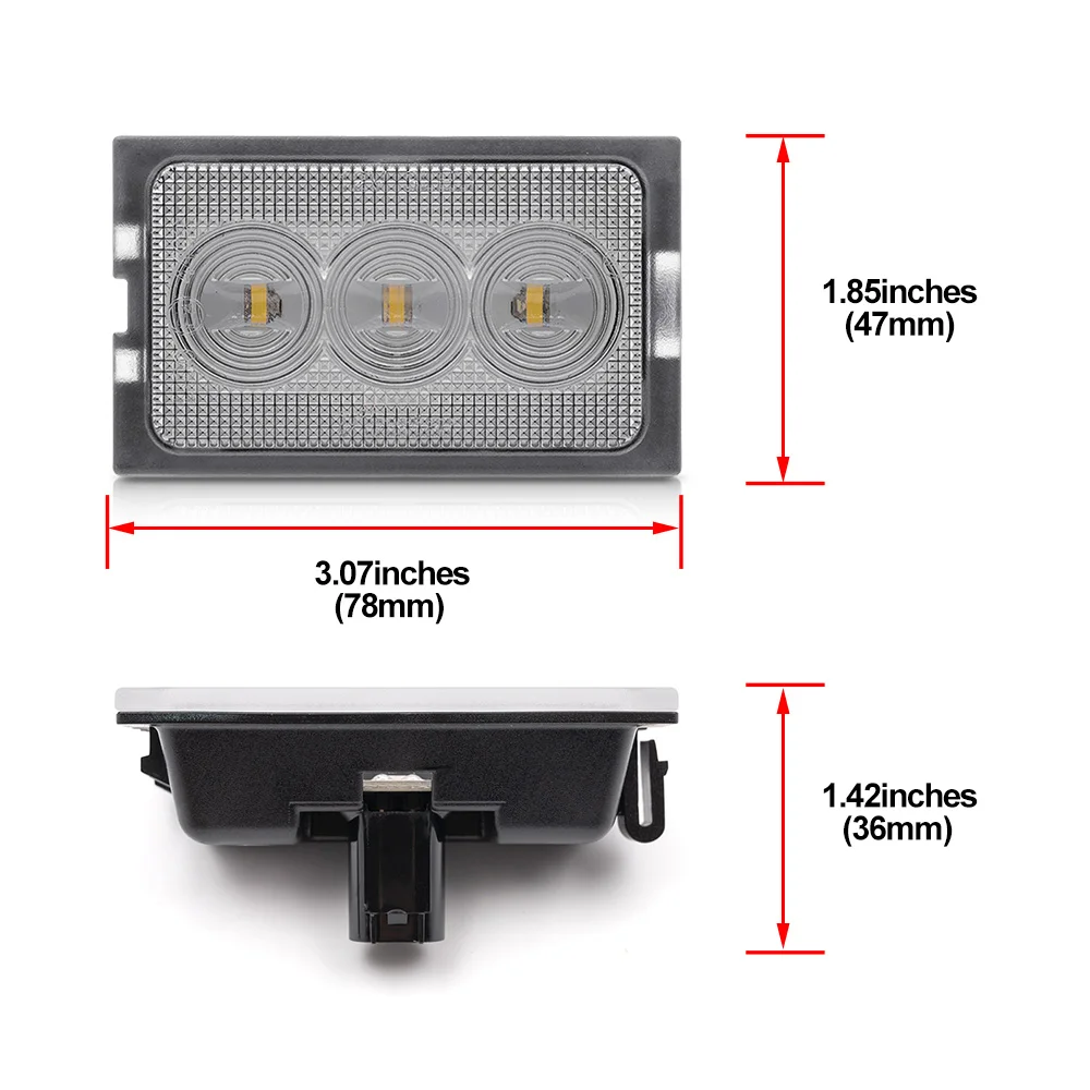 Каждая мощная светодиодная Лицензионная лампа питается от 3 светодиодных чипсетов для невероятно яркого выхода на светильник. Легко установите 3 светодиодных номерных знака, удаляя ваши фондовые номерные знаки (OEM ЧАСТЬ # XF C500040) с лампой накаливания и адаптером и непосредственно Подключаясь к полным светодиодным лампам