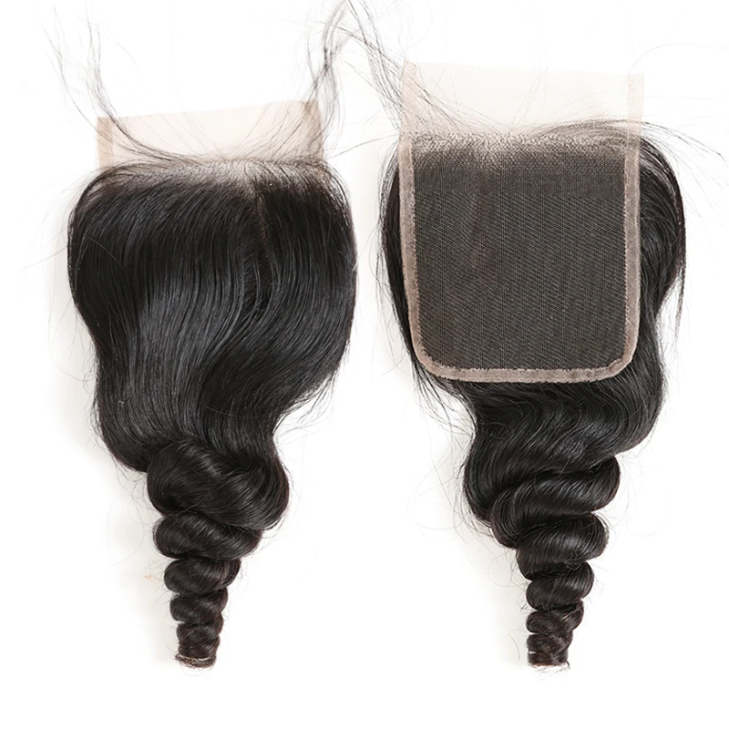 Ali Queen бразильские необработанные волосы, свободные волнистые кружевные застежки с детскими волосами 130% плотность 4x4 кружевная застежка, бесплатная доставка