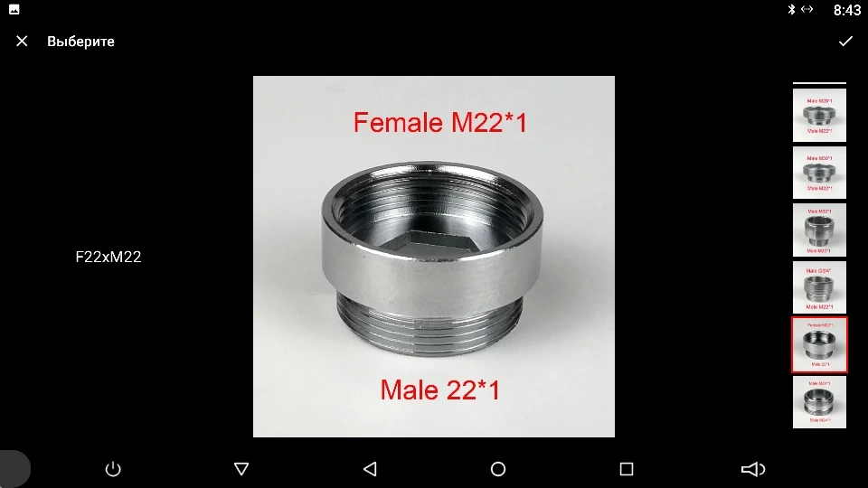Доставка правильная, но это не подходит для моего крана. Я купил 22 мм и мой кран 24 мм