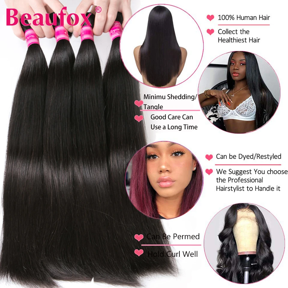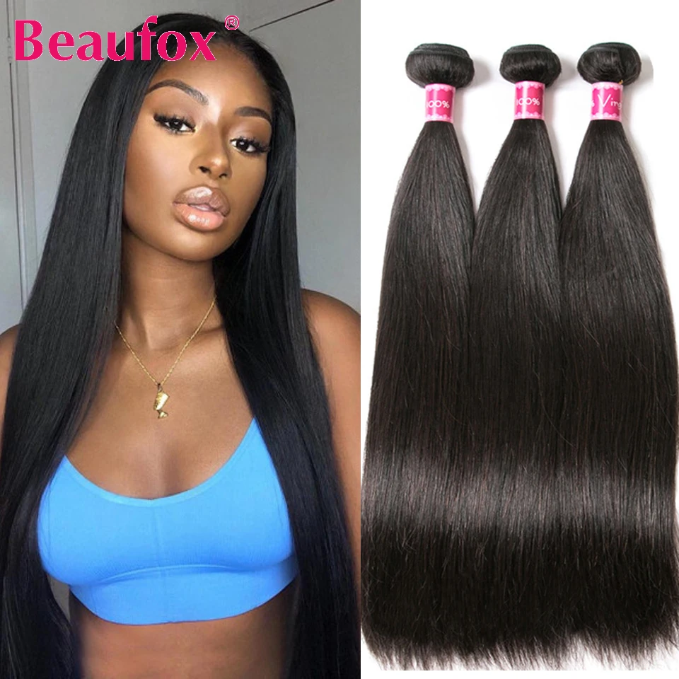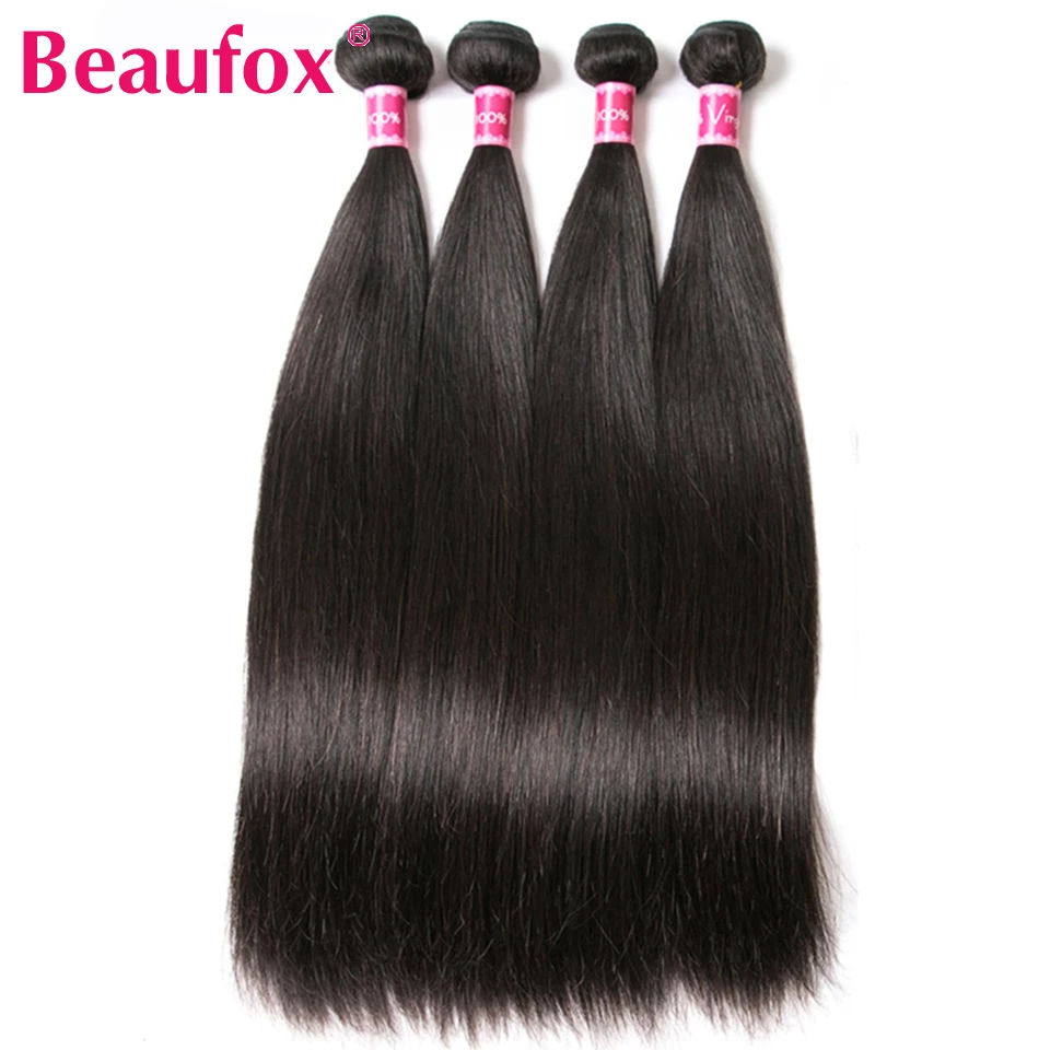 Бразильские пучки волос Beaufox, прямые пряди человеческих волос для наращивания, натуральные/черные волосы Remy 1/3/4 шт., пучки волос 8-30 дюймов