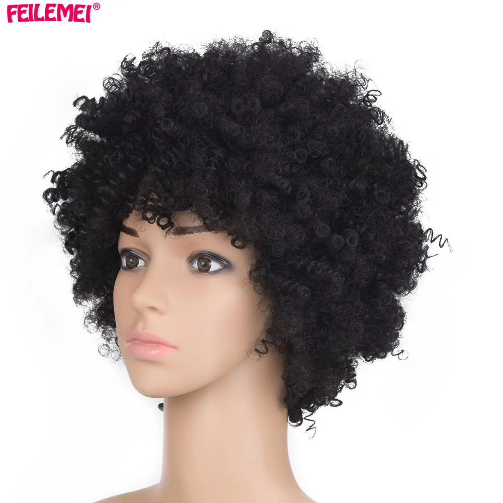 Feilimei афро кудрявый парик 6 дюймов 110 г синтетические короткие черные парики для черных женщин Бесплатная доставка женские волосы
