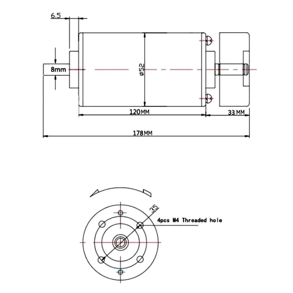 Детали: Посылка включает в себя: 1 шт. x 500 Вт мотор шпинделя Дисплей сайз: Рабочее напряжение: 12-48VDC Мощность: 500W Скорость: 3000-12000 об/мин (12-3000 об/мин, 24-6000 об/мин, 36-9000 об/мин. 48-12000 об/мин) Крутящий момент: 550mN.m Сопротивление изоляции:> 2 megohms Диэлектрическая прочность: 400 В Диаметр: 52 мм