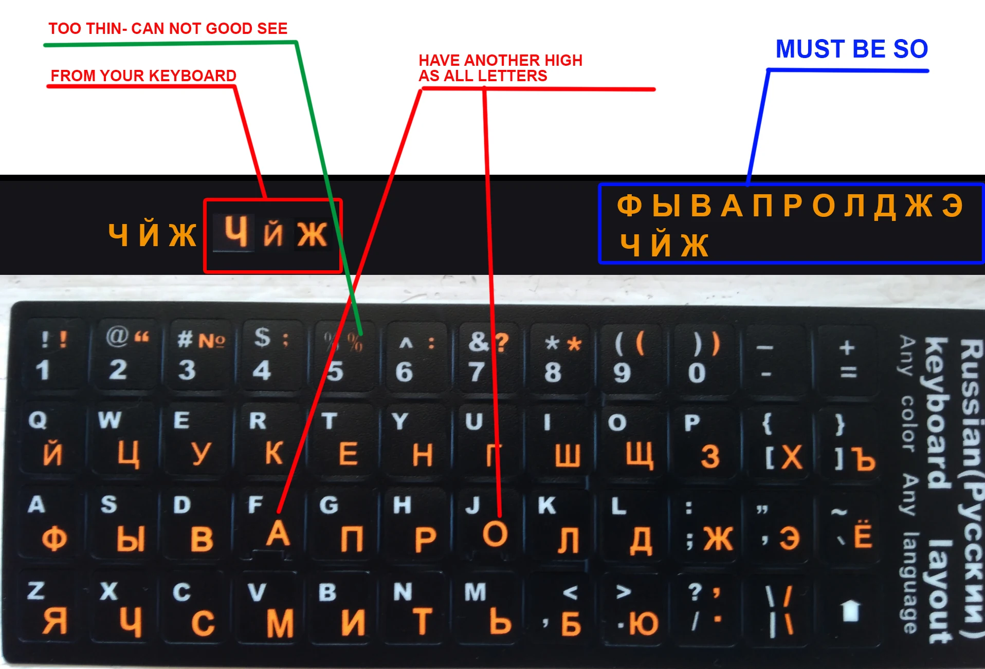 Отлично! Прочная клейкая лента, толстая наклейка ו... תתת, хорошая печать, шероховатость как клавиатура Del. Рекомендуем! Подходит для прямых и выпуклых кнопок.