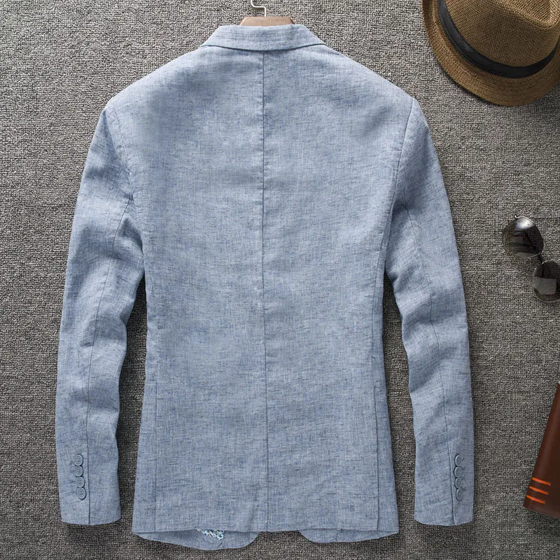 Новинка, весенний мужской льняной костюм, блейзер высокого качества, Модный летний Блейзер, приталенный силуэт на двух пуговицах, Размеры M L XL XXL XXXL