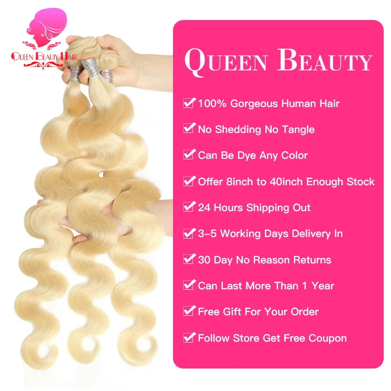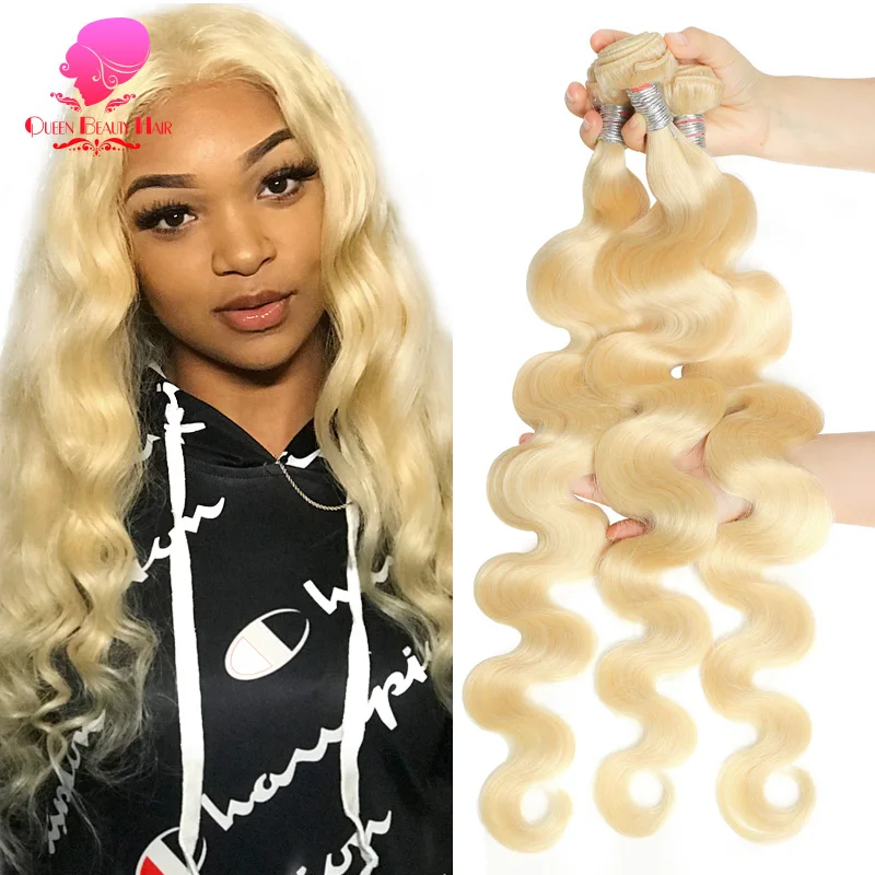 QUEEN BEAUTY 1 3 4 шт. в партии 613 блонд волос пучок Реми бразильские волнистые искусственные пучки s 8 - 28 30 32 36 38 40 I