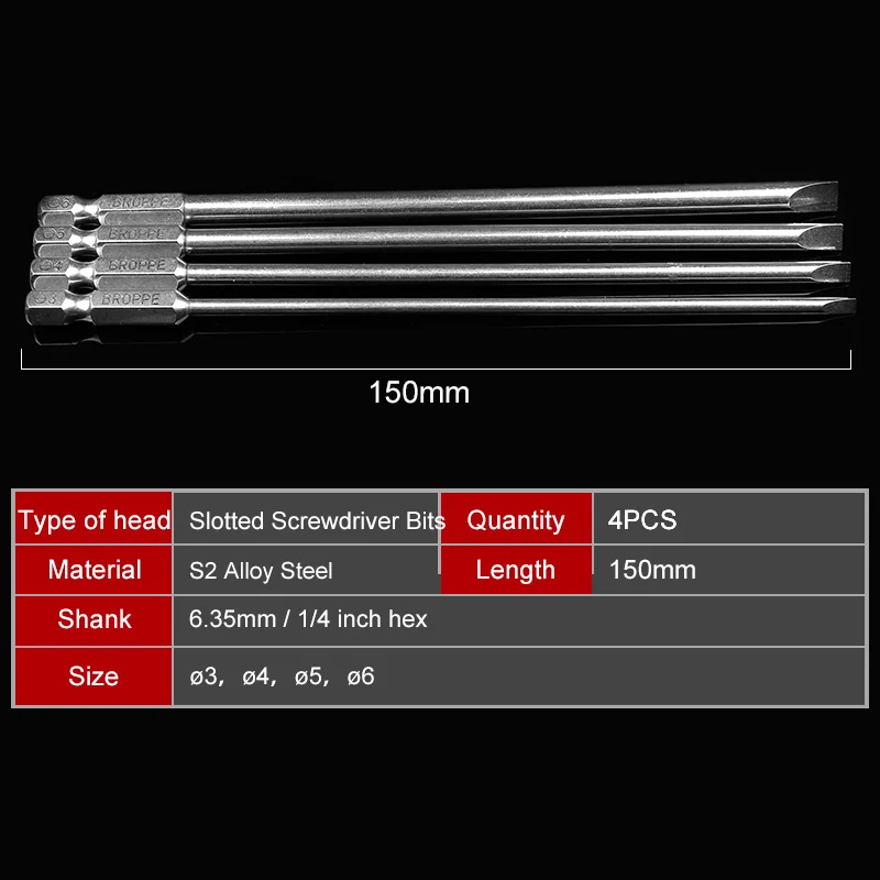 4 шт.компл. 150 мм 2,0-6,0 мм S2 наконечник с прорезью отвертка бит сплав Сталь с плоской головкой, отвертка шлицевая инструменты Наборы