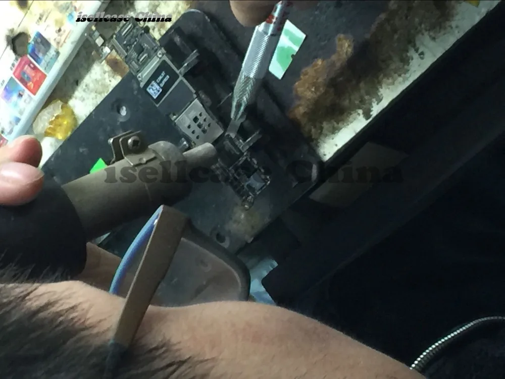 3: Пистолет горячего воздуха на маленькой головке, температура 350 градусов, чтобы открыть первое положение ножа около 10 секунд, а затем встряхнуть в нижней части чипа, чтобы вставить.