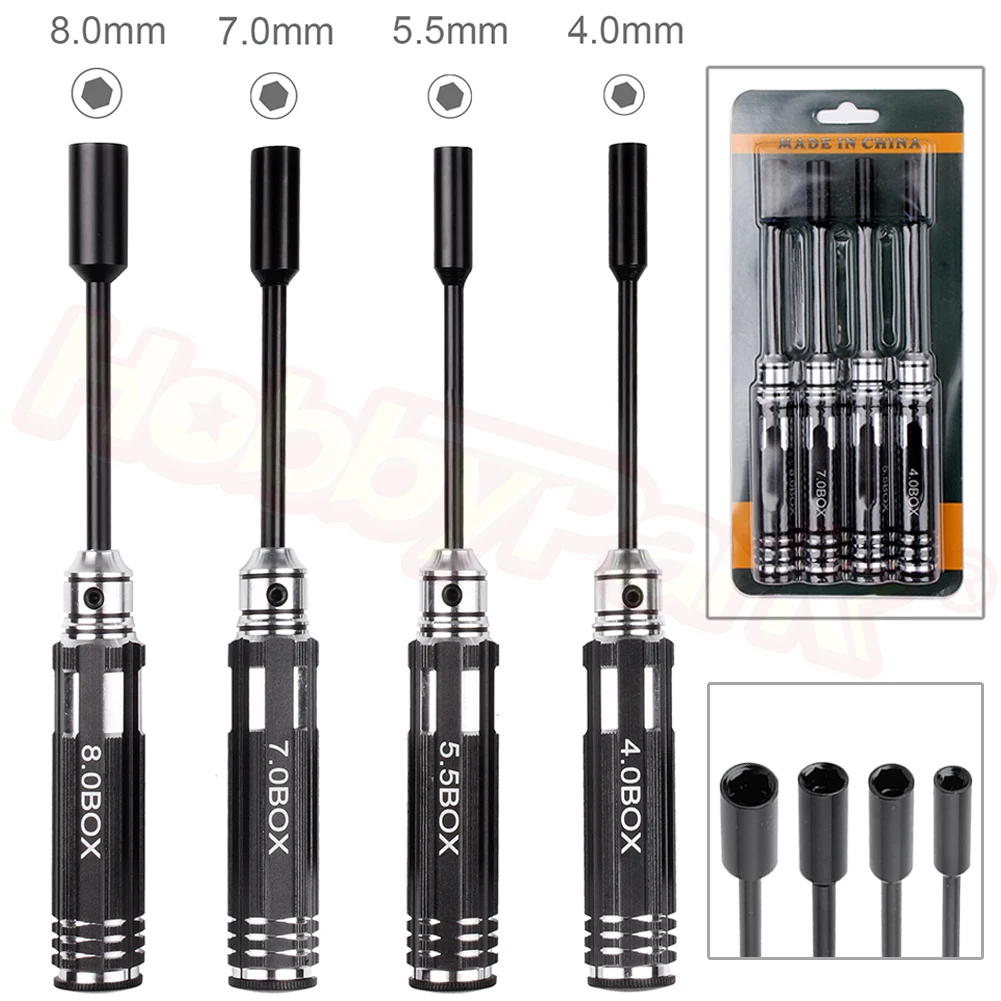4 шт. Шестигранная гайка ключ гнездо Отвертка гаечный ключ коробка 4,0 мм 5,5 мм 7,0 мм 8,0 мм ремонтный набор инструментов для радиоуправляемого автомобиля квадрокоптера дрона