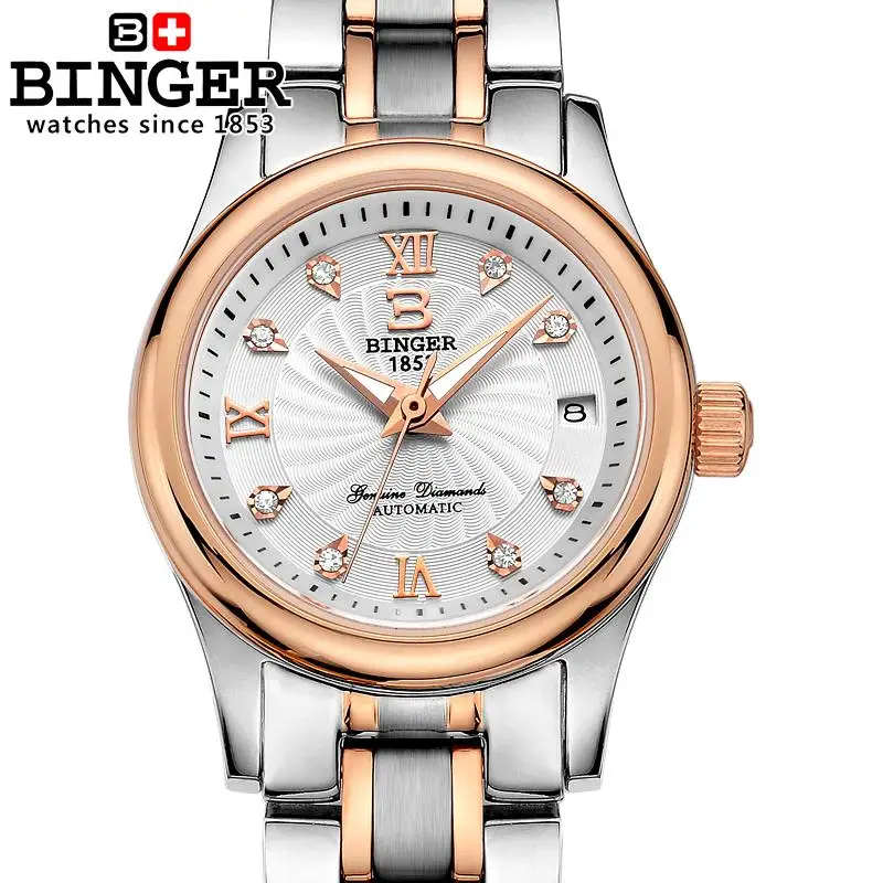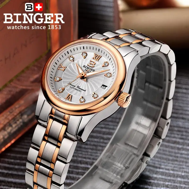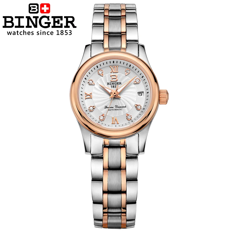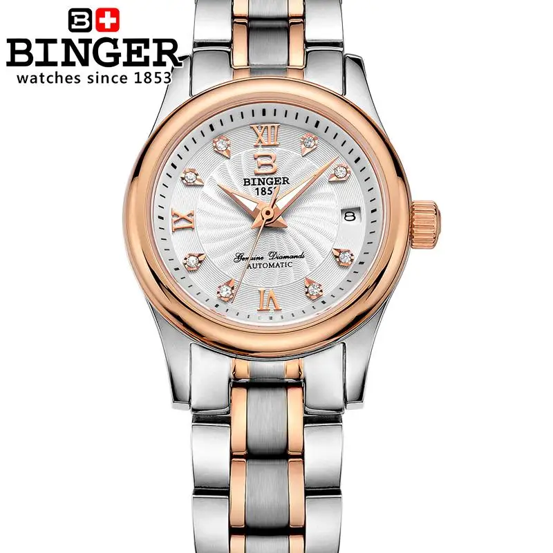 Switzerland BINGER женские часы luxury18K Золотые механические наручные часы, полностью водонепроницаемые наручные часы из нержавеющей стали, с ремешком на руку, из нержавеющей стали