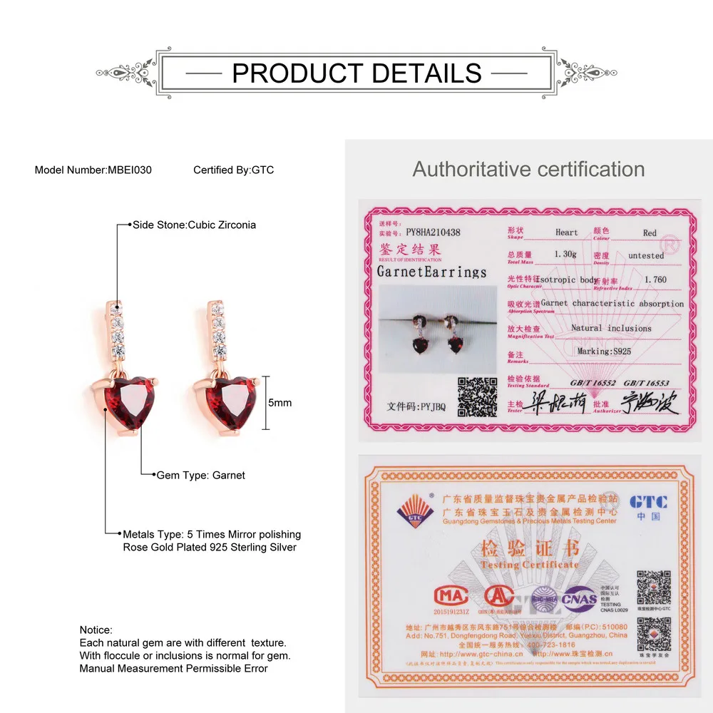 Женские серьги-подвески MoBuy MBEI030, из серебра 925 пробы, с натуральным гранатом