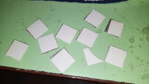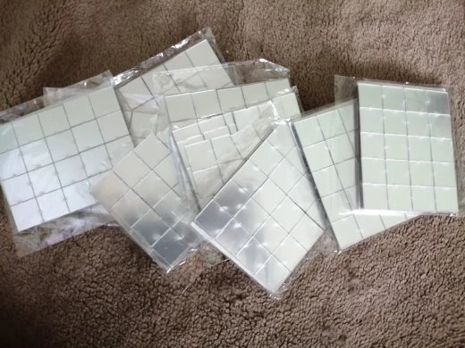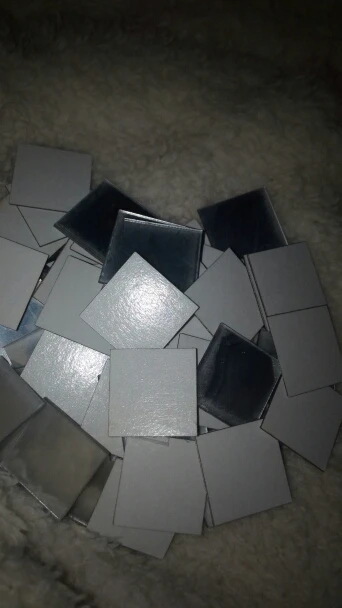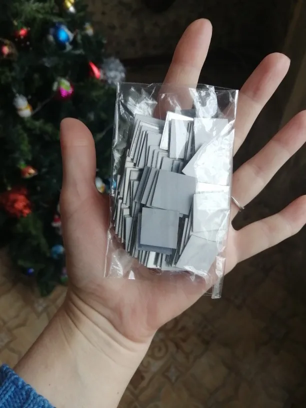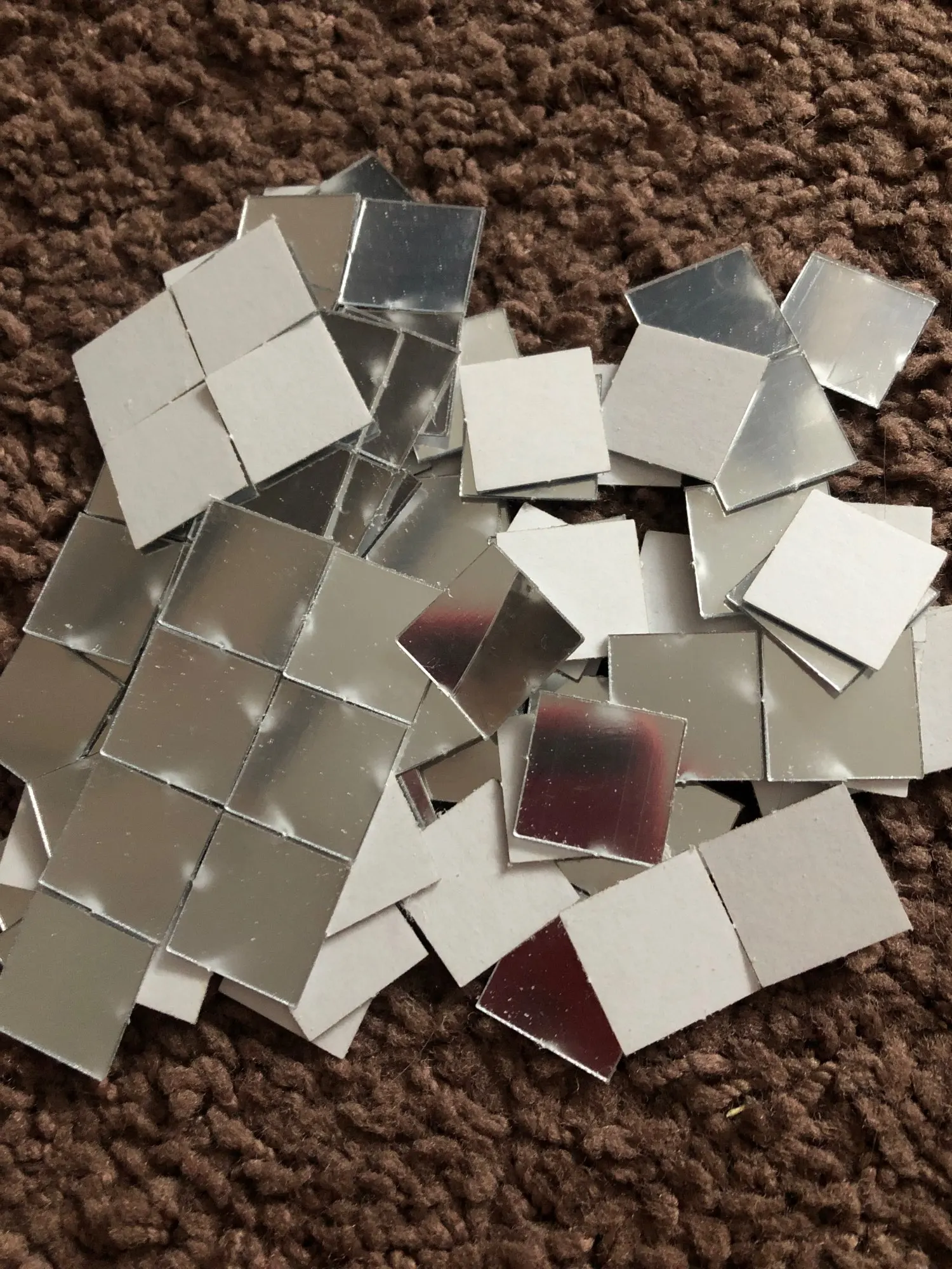 шло долго 2 месяца в КБР, с продавцом не общалась. квадратики по 2см, легкие, мне нравятся, ровно 100шт.правда отражение хорошее.