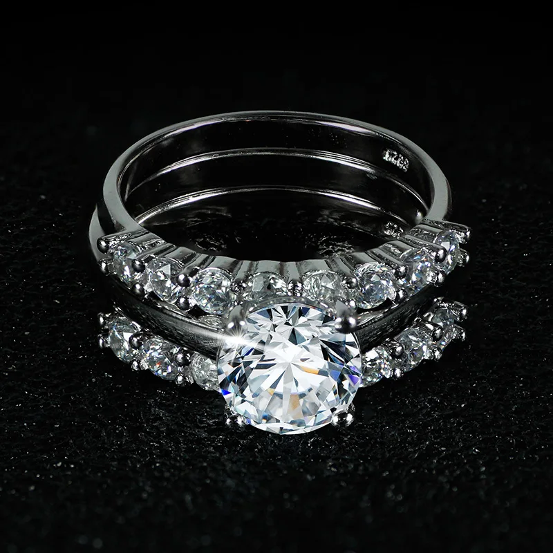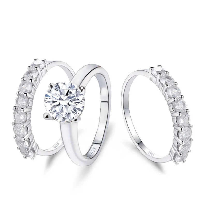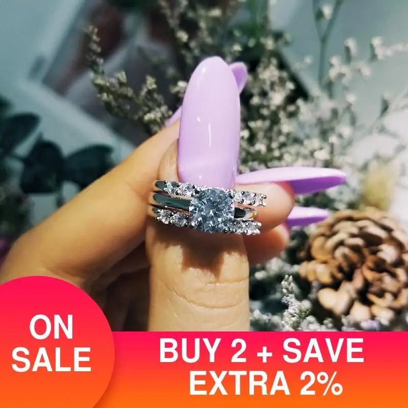 Женский Свадебный комплект из 3 предметов, обручальное кольцо серебристого цвета, R4324